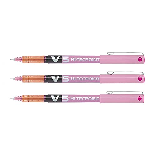 Pilot-V5-Tintenroller Mit Flüssigtinte, 0,5 Mm Spitze (Einzelstift) – Schwarz 3 Stück Pink/Violet/Turquoise
