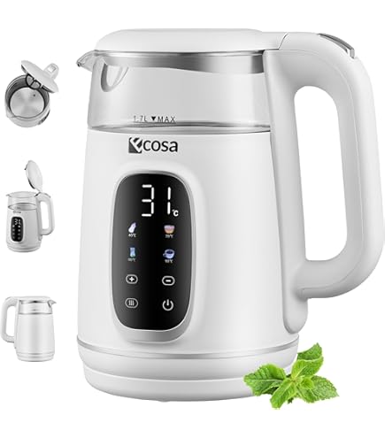 Dank seiner hochwertigen Materialien ist dieser Wasserkocher nicht nur ein optisches Highlight, sondern auch besonders pflegeleicht und langlebig. Praktische Einhand-Deckelöffnung, für eine komfortable und schnelle Befüllung ohne großen Aufwand Automatische Warmhaltefunktion, die das Wasser über längere Zeit auf der gewünschten Temperatur hält, ideal für mehr Komfort im Alltag Die praktische Einhand-Deckelöffnung ermöglicht ein einfaches Befüllen und Reinigen des Wasserkochers, ohne großen Aufwand. Abnehmbarer Glas-Topf mit 360 Grad drehbarer Steckverbindung, ermöglicht eine flexible Nutzung und kabelloses Ausgießen in jede Richtung Komfortable Handhabung und flexible Nutzung Der abnehmbare Topf mit 360-Grad-drehbarer Steckverbindung ermöglicht eine mühelose Handhabung, egal aus welcher Richtung Sie den Wasserkocher aufstellen. Putting Into Operation; Safety System; Cleaning And Maintenance Wasserkocher Mit Warmhaltefunktion Grossag WK 24.00 Glas-Wasserkocher 1,7 L Mit Wählbaren 5 Temperaturstufen, Modernes Design In Weiß, Abnehmbarer Glastopf Mit 360 Grad Drehbarer Steckverbindung, Kalkfilter & Edelstahl-Basis Bosch Wasserkocher Mit Temperatureinstellung Der abnehmbare Topf mit 360-Grad-drehbarer Steckverbindung ermöglicht eine mühelose Handhabung, egal aus welcher Richtung Sie den Wasserkocher aufstellen. Diese Funktion bietet maximale Flexibilität und Komfort, besonders beim kabellosen Ausgießen So wird der Wasserkocher zum unverzichtbaren Helfer für den täglichen Gebrauch in Ihrer Küche. 5 variable Temperaturstufen (40°C / 60°C / 80°C / 90°C / 100°C), perfekt für die Zubereitung verschiedenster Getränke bei der optimalen Temperatur GROSSAG Glaswasserkocher WK 8 0,5l weiß | 100550216 Stilvolles Design und hochwertige Materialien Der elektrische Wasserkocher überzeugt mit einem großzügigen 1,7-Liter-Glas-Topf, für stilvolles und effizientes Erhitzen. Erleben Sie den modernen Komfort des elektronischen Wasserkochens mit demGROSSAG WK24.07 Wasserkocher !