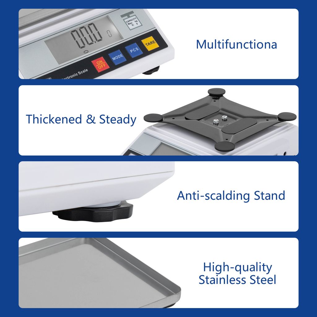 Beschreibung: Diese digitale elektronische Waage ist eine intelligente Waage, die aus hochstabilen Sensoren und einem Einzelchip-Mikrocomputer besteht und die Probleme des Kriechens und der Linearität löst, die durch einen Widerstandsdehnungssensor verursacht werden. LCD-Display mit großer Hintergrundbeleuchtung LCD-Display mit großem Bildschirm und Hintergrundbeleuchtung, klar und leicht zu lesen. Als die Vorteile des genauen Wiegens, der schnellen Stabilität, der einfachen Bedienung und der vollständigen Funktion, und eignet sich zur schnellen Bestimmung der Qualität und Quantität von Objekten in Industrie, Landwirtschaft, Handel, Schule, wissenschaftliche Forschung. Hochwertiger Edelstahl-Messtisch Leicht zu reinigen, korrosionsbeständig und rostfrei. Es verfügt über eine automatische Fehlererkennung, einen Überlastalarm, eine große, einfach zu lesende Digitalanzeige und vor allem schnelle, genaue Messwerte. Funktionen: Peeling / Null-Funktion, Selbstkalibrierungsfunktion, Fehleranzeigefunktion, Einheitenumrechnung: Gramm (g), Karat (ct), Unze (oz), Pfund (lb). Diese analytische elektronische Waage kann bis zu 100 g / 200 g / 300 g / 500 g mit einer Genauigkeit von 0., 001 g messen Es verfügt über die Funktionen Abziehen des Gewichts, Selbstkorrektur, Speicher, Zählen, Fehleranzeige und dergleichen. CGOLDENWALL Laboranalytische und wissenschaftliche Waage mit großer Reichweite, 0,1 g, hochpräzise, intelligente digitale elektronische Waage – bereits kalibriert und gebrauchsfertig – (5 kg, 0,1 g Cgoldenwall Deutschland Präzisionswaage Analysewaagen 500g 0.01g Hochpräzise Digitale Elektronische Waage Laborwaage Schulwaage Schmuckwaage Feinwaage Digital | DE Digitale Küchenwaage Dreiseitige Glasabdeckung Schiebetür kann öffnen. Seit 5 Jahren hat SheIn. 500g x 0,01g Digitale Präzision Skala Gold Silber Schmuck Gewicht Info zu diesem Artikel Diese digitale elektronische Waage ist ein intelligentes Gleichgewicht bestehend aus Sensoren mit hoher Stabilität und einem Single-Chip-Mikrocomputer. Das Gebrauchsmuster löst die Probleme des Kriechens und der Linearität durch einen Widerstands-Dehnungssensor