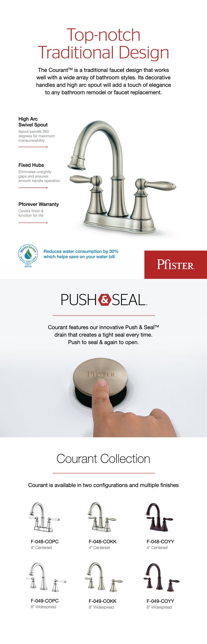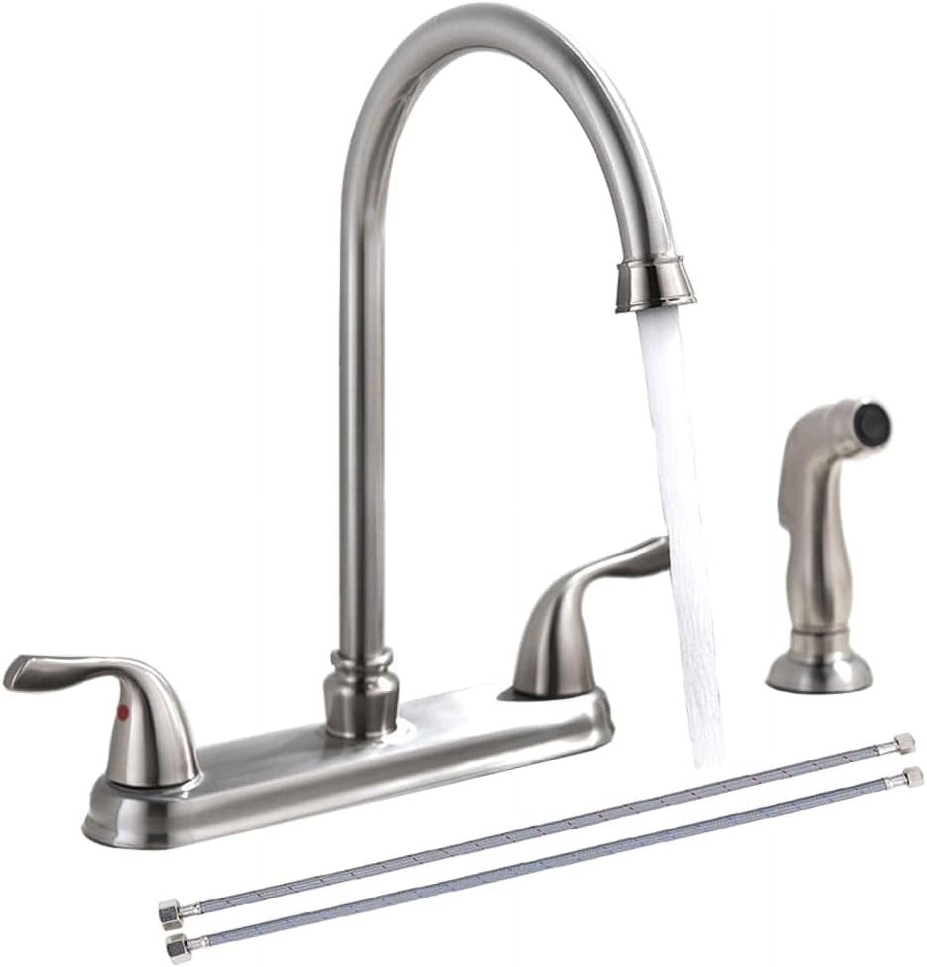 Küchenbrücke Wasserhahn Auslauf 360 Grad schwenkbar Keramikscheiben-Ventil-Technologie für reibungslose Leistung. Erfüllt oder übertrifft CalGreenkriterien, was hilft, Wasser im durchschnittlichen Zuhause um mindestens 20 Prozent zu sparen. Die Courant-Familie bietet ein klares, traditionelles Design, das gut zu einer Vielzahl von Stilen passt. TiteSeal eliminiert die Notwendigkeit von Kitt oder Silikon während der Installation. Zweigriff Brücke Wasserhahn für Küchenspüle mit Seitensprüher Seitensprüher Installation ist optional. Küchenarmatur Seitensprühschlauch Länge von 47 15,2 cm. Spültischarmatur Küche Pfister F-031-4COS Courant Bridge Kitchen Faucet With Side Chrome Courant Bridge Faucet Zweigriff 8 Brücke Wasserhahn verteilt mit 3 oder 4-Loch Installation (je nach Verwendung von Seitensprüher). The Pfister Courant Kitchen Faucet with Side Sprayer is a stylish and functional addition to any kitchen. Its sleek, modern design pairs well with various decor styles, and the durable finish resists water spots and fingerprints, keeping it looking clean
