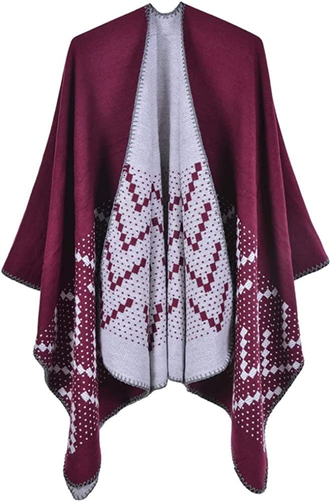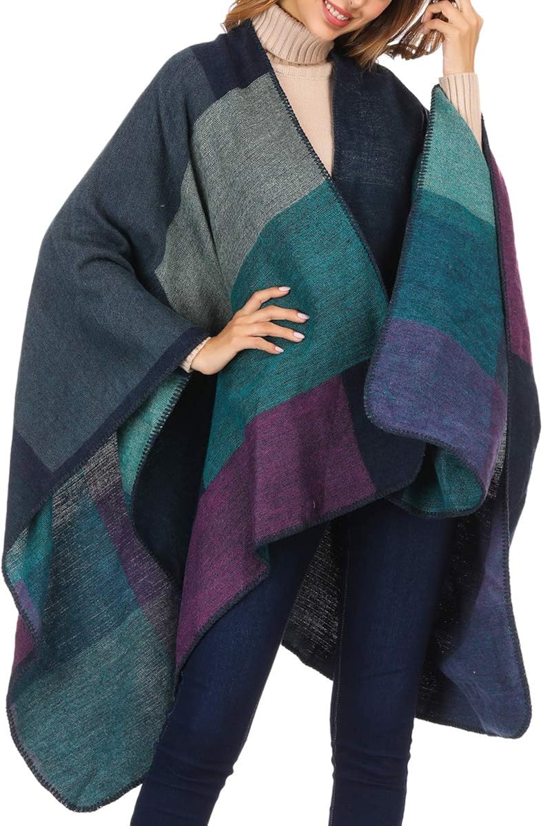 FINIZO Women's Scarf Wrap Ponchos Cape Cardigan Pullover Open Front For Gifts, Gray