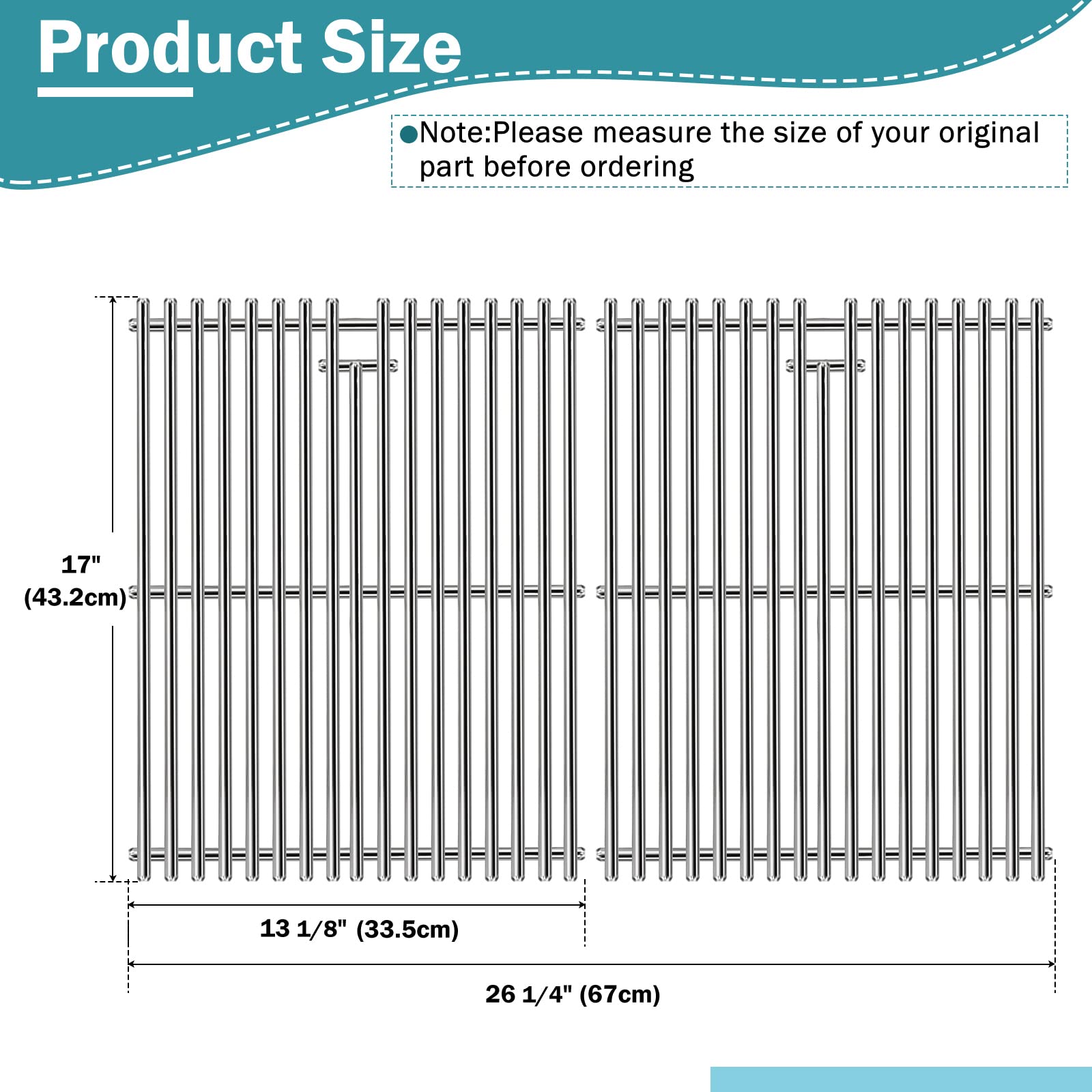 Gusseisen-Grillroste, matt, emailliert, 43,2 x 66 cm, 2 Roste Ersatzteile, bitte überprüfen und vergleichen Sie die Maße mit Ihren Originalteilen, bevor Sie bestellen. Passend für Charbroil Charbroil 463241113, 463449914, 463446015, 463411512, 463411712, 463411911., C-45G4CB Broil-Mate 7020-64, 7120-64, 7123-64, 7123-64H, 7123-67, 7123-67H, 7123-84, 7123-87 Ersatzteile, bitte überprüfen und vergleichen Sie die Maße mit Ihren Originalteilen, bevor Sie bestellen. Passend für BHG 720-0783R, 720-0783DC, 720-0783H Rost Für Lowes Charbroil 463241113, 463449914, HomeDepot Nexgrill 720-0830H, 720-0888, 720-0888N, 720-0783E, 720-0830A, MASTER FORGE 1010037, Kenmore 122.16134110, Charbroil 463411512, 463446015 Grate for Lowes Charbroil 463241113, 463449914, HomeDepot Nexgrill 720-0830H, 720-0888, 720-0888N, 720-0783E, 720-0830A, Master Forge 10037. kenmore 122.16134110, Charbroil 463411512, 463446015