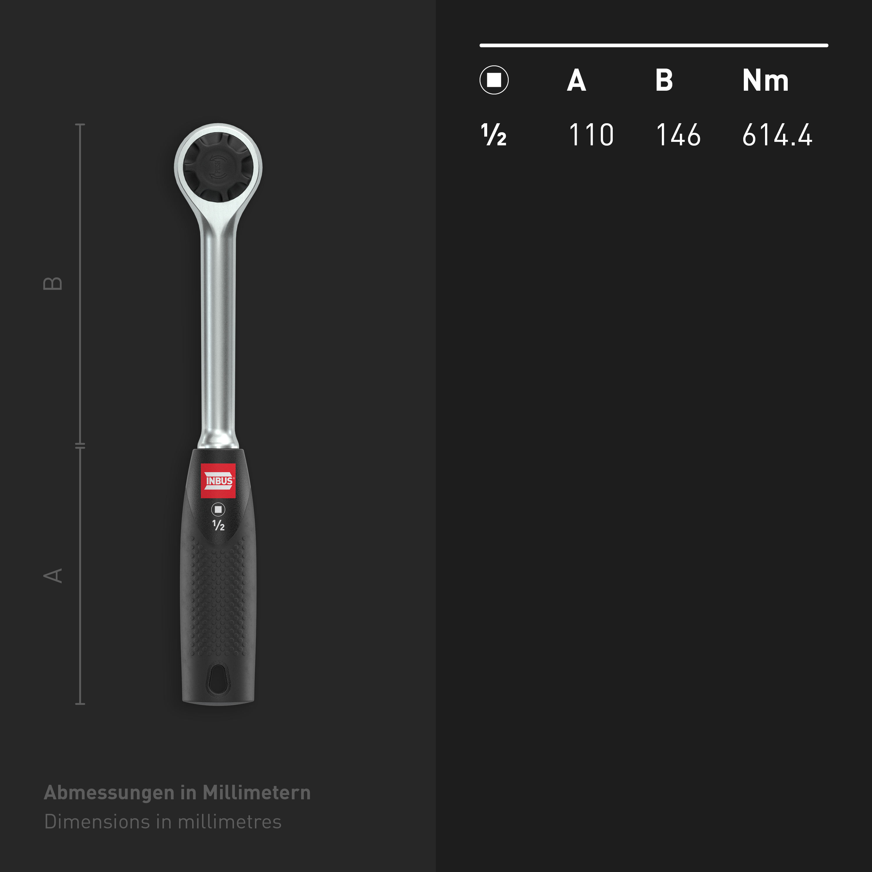Beta 009200871 1/2" Ratsche Mit Durchtrittsvierkant 72 Zähne 275 Mm