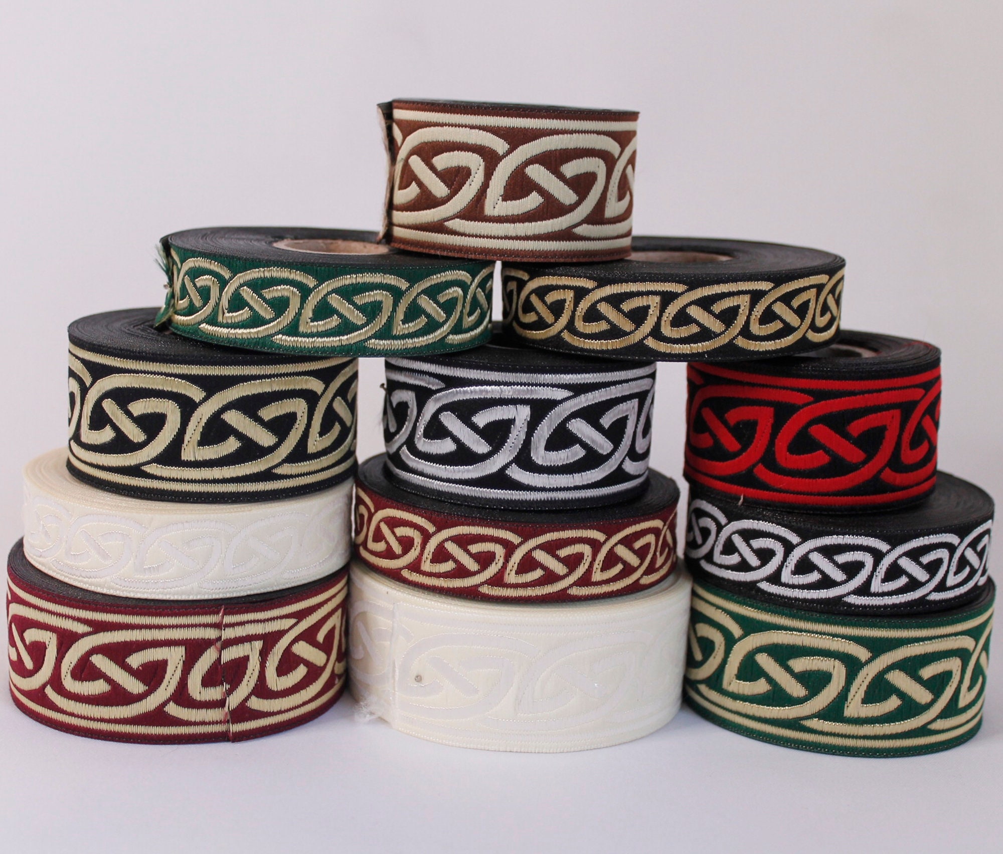【Kleider und Tops】Bringen Sie einen Hauch von Eleganz in Ihre DIY-Kleidung und zeigen Sie Ihren einzigartigen Stil. Pflegehinweis: Die Farbe verblasst beim Waschen nicht und sorgt für lang anhaltende Lebendigkeit. Bastel- und DIY-Projekte: beliebt bei verschiedenen Bastelprojekten, einschließlich der Herstellung von Handtaschen, Schuhen und Dekorationsartikeln Diese exquisite Tribal-Bordüre ist perfekt für stilvolle Kleidungsaccessoires und atemberaubende Wohnkultur. Outdoor-Ausrüstung: Wird aufgrund seiner Stärke und Haltbarkeit bei der Herstellung von Rucksäcken, Zelten, Schlafsackgurten und anderem Camping-Zubehör verwendet Bastelspaß: Müheloses Nähen; ideal für Hand- und Maschinennähte, diese Jacquard-Bordüre hebt jedes Projekt hervor. Geeignet zum Bügeln auf niedriger Stufe und perfekt für die chemische Reinigung. Keltische Knoten Bordüren Baukasten Stickdateien Set 7x14 - Zuli's Bunte Dinge Keltische Knoten 35 Mm - 1,25" Grün & Gold Keltisches Herz Gewebte Bordüre, Herbst Band Band Bordeaux Das Band ist sehr detailliert, hochwertig, bunt und malerisch. Heimtextilien: ideal für Polster, Vorhänge, Kissenbezüge, Tagesdecken, Kissenbezüge und Handtücher Diese strapazierfähige Polyester-Bordüre sieht gut aus, Projekt für Projekt. Stilvolle Bekleidungsverzierungen: Taschen, Röcke, Hüte und Jeans - Werten Sie Ihre Outfits mit diesem stilvollen Jacquardband auf. Verschönern Sie Ihre DIY-Projekte mit diesem von keltischen Knoten inspirierten Jacquard-Band, das Ihrem Handwerk Einzigartigkeit und Eleganz verleiht. Diese exquisite Tribal-Bordüre ist perfekt für stilvolle Kleidungsaccessoires und atemberaubende Wohnkultur