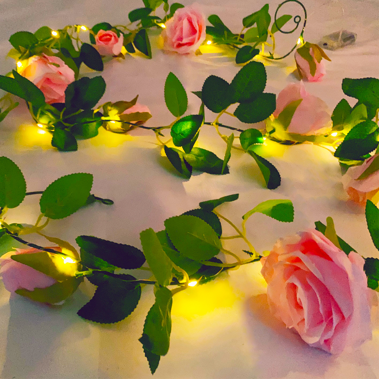 Fielegen Künstliche Blumenranke Mit 20 LED-Lichterketten, Batteriebetrieben, 1,8 M, Mit 20 LED-Lichterketten, Seide, Zum Aufhängen, Für Hochzeit, Party, Garten, Zuhause, Tisch, Wanddekoration