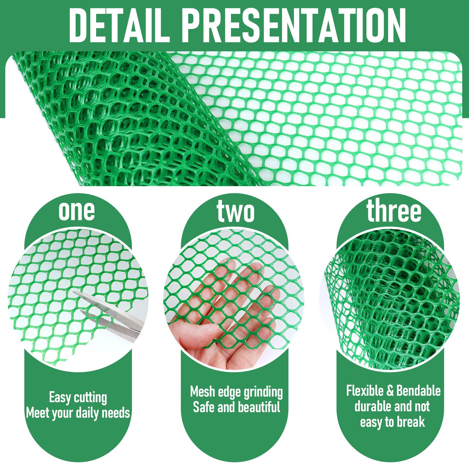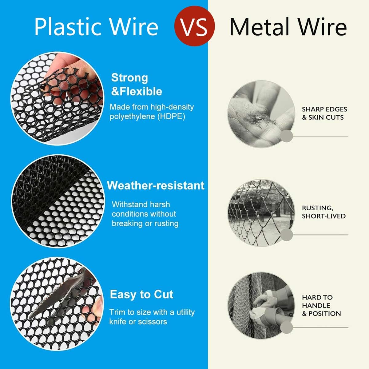 Kunststoff-Drahtzaun, 40,6 Cm X 6,1 M, Kunststoff-Hühner-Drahtgeflecht Für Geflügel, Hunde, Kaninchen, Schlangenbarriere Und Gartenarbeit, Vielseitiger Kunststoffzaun (40,6 X 6,8 M, Weiß