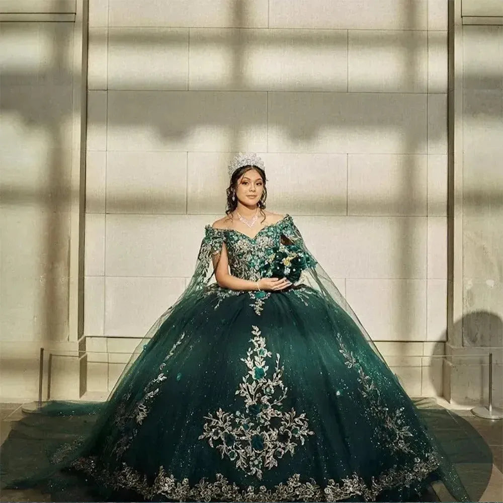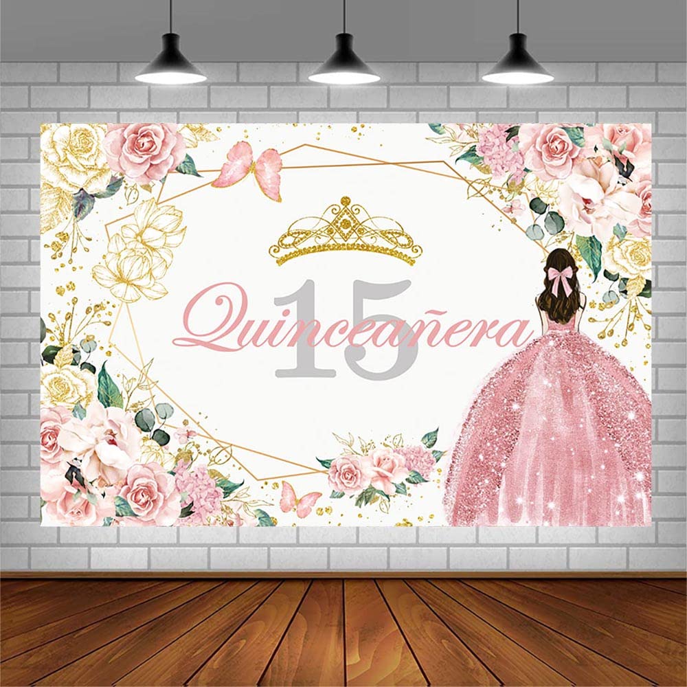 Sendy 3 X 2,1 M Quinceanera 15. Geburtstag Hintergrund Für Mädchen Grünes Kleid Krone Prinzessin Fotografie Hintergrund Grüne Blumen Und High Heels Schuhe Geburtstag Party Dekorationen
