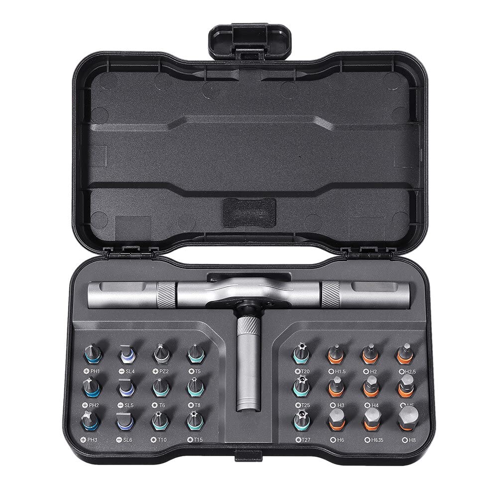 Magnetische Präzisionsbits:Halten Schrauben sicher auf der Spitze. 11 in 1 Ratschenschraubendreher-Set Passt in jede Werkzeugtasche und verhindert Verlust von Kleinteilen. Spezifikationen: Produktname: 24-in-1-Multifunktions-Ratschen-Set. 24 in 1 Magnetschraubendreher Set Praktischer Ratschenmechanismus:Der drehbare Griff beschleunigt Schraubvorgänge um 50%. Magnetic Ratchet Screwdriver 24-in-1 Multifunktions-Ratschenschraubendreher Set, Mit Legi Snap On Tools Dieses Werkzeugset stellt eine unverzichtbare Ergänzung für Ihre Sammlung dar. Dank der magnetischen Halterung können die Bits mühelos am Schraubendreher angebracht werden. Vielseitiges 24-in-1 Set:Bietet Schraubendreher-Bits für Möbelmontage, Elektronikreparaturen und Haushaltsprojekte. Verhindert das Fallenlassen in unzugänglichen Bereichen wie Computergehäusen. Vielseitig für verschiedene Wartungsszenarien] Dieses magnetische Ratschenschraubendreher-Set eignet sich perfekt für die tägliche Wartung von Haushaltsgeräten, Heimwerken, Fahrradreparaturen und die Wartung von Präzisionsgeräten, für Heimwerker und Profis Perfekt für enge Einbausituationen und ermüdungsfreies Arbeiten. Hergestellt aus gehärtetem Stahl stellt dieses Set eine wertvolle Anschaffung dar, die Ihnen viele Jahre Dienst leisten wird.