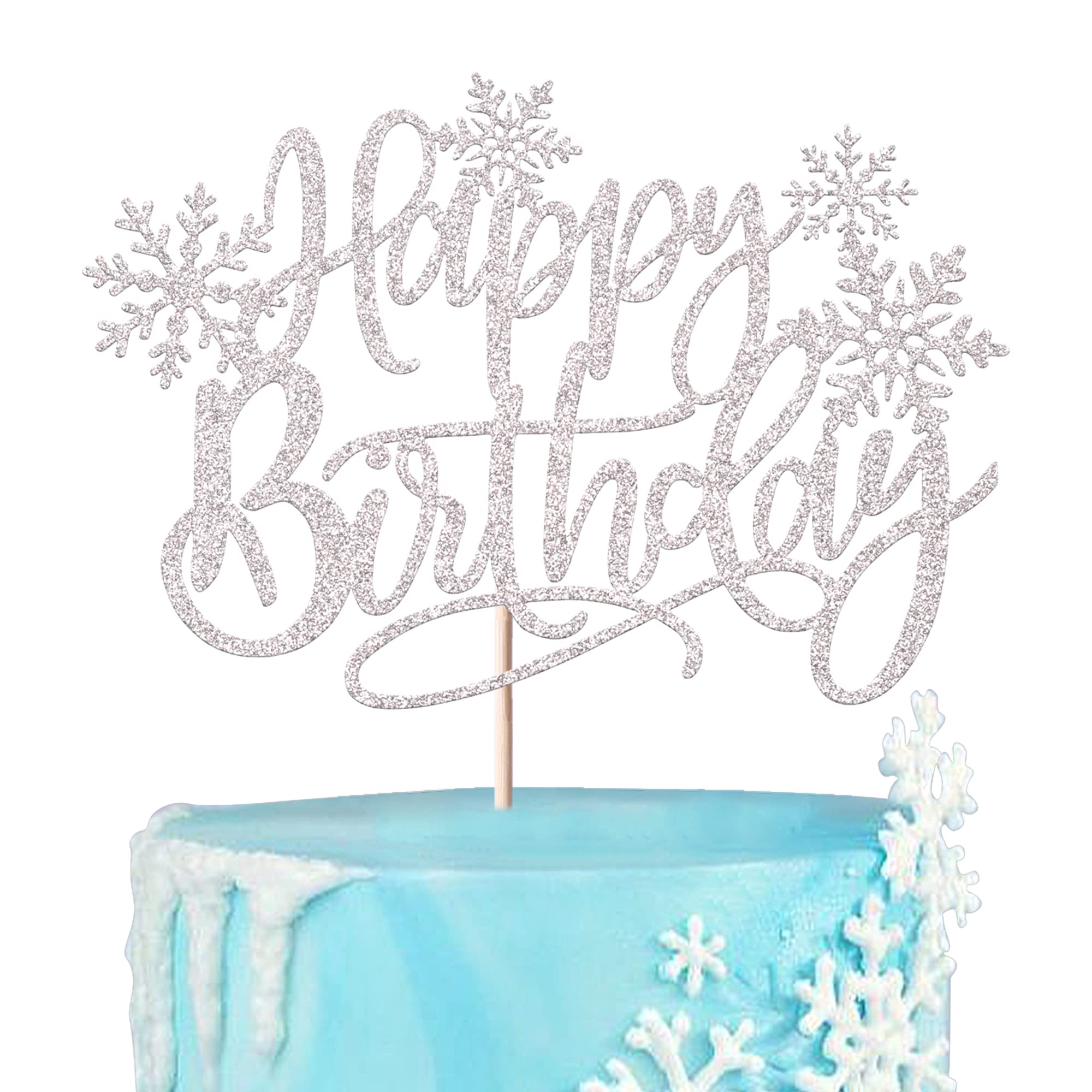 Rsstarxi 1 Packung Schneeflocke Happy Birthday Cake Topper Silber