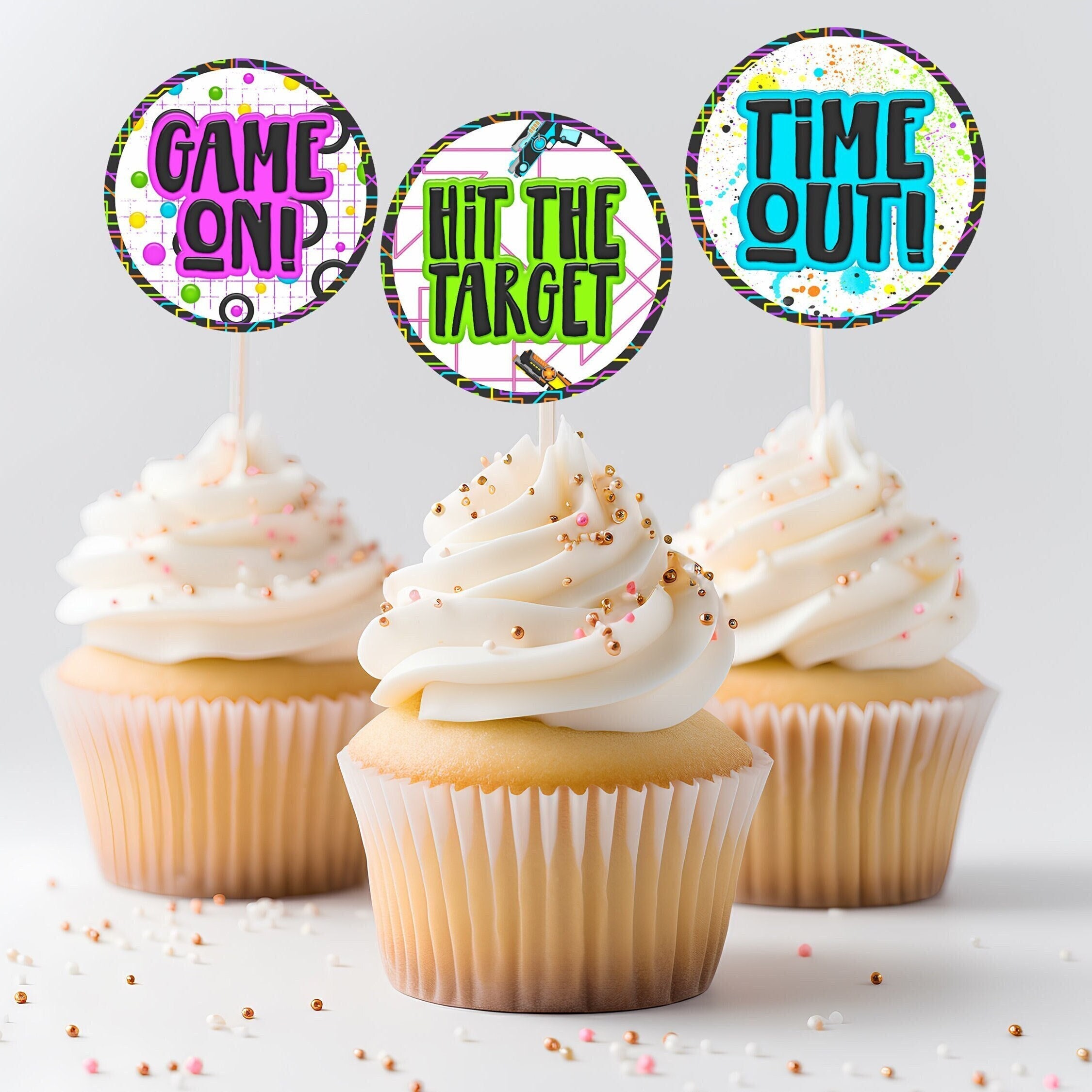LECAKTO Laser Tag Cupcake Toppers, 1 Piece, Gaming Cupcake Topper, Birthday Party Decoration, Colorful