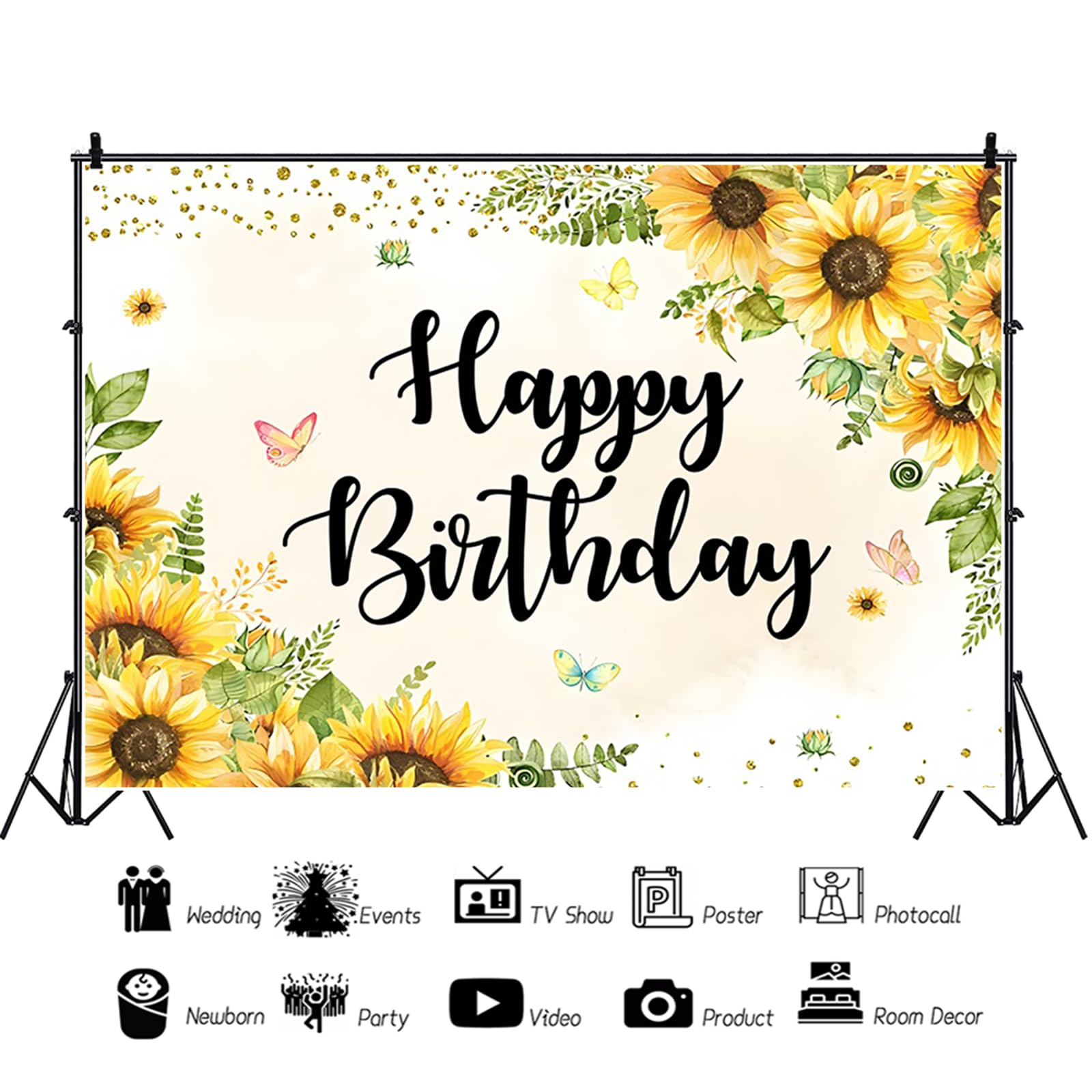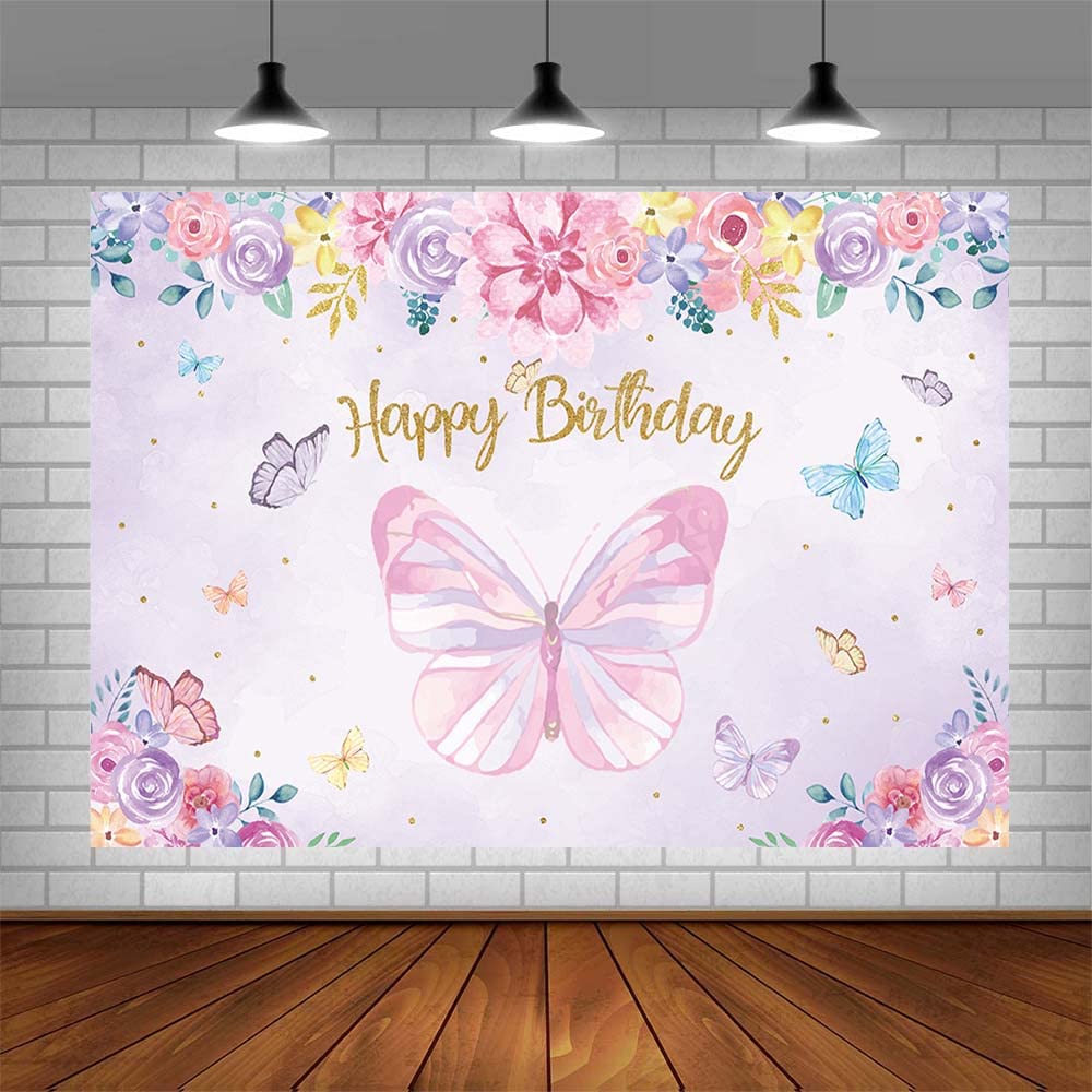 Aperturee 2,1 X 1,5 M Lila Blumen Happy Birthday Hintergrund