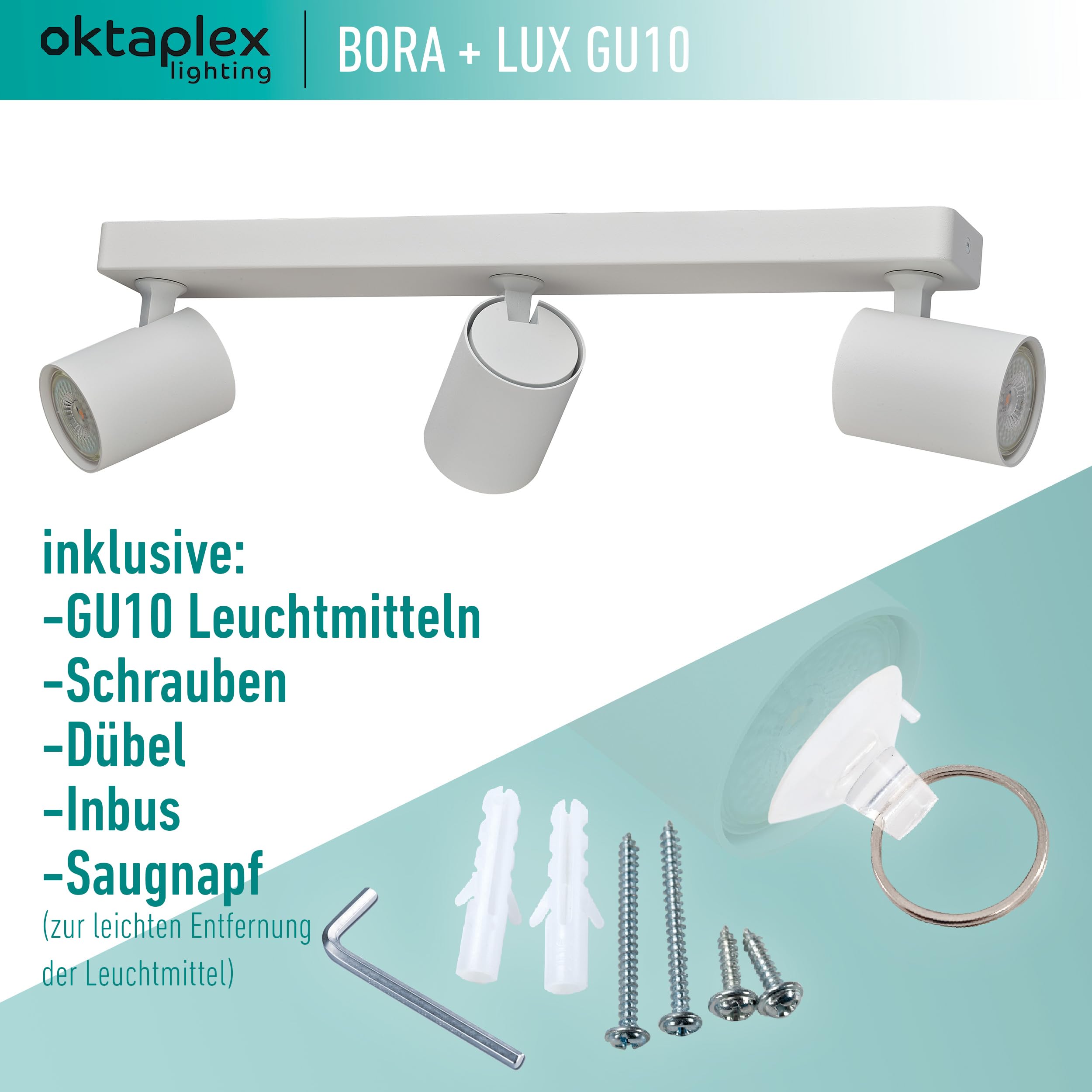 Oktaplex Bora Deckenstrahler 1-flammig GU10 LED Spotleuchte 230V Spotbalken Schwenkbar Strahler