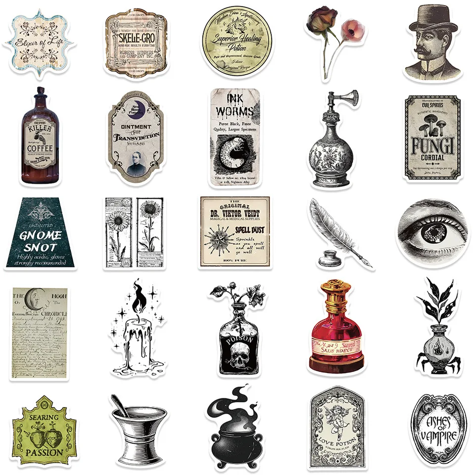 10/50/100 Stücke Halloween Vintage Trank Flasche Etiketten Aufkleber Retro Horror Gothic Aufkleber Koffer Scrap Booking Laptop Aufkleber