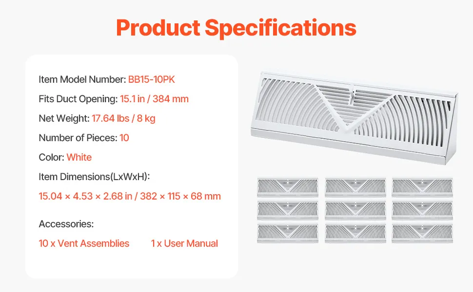 VEVOR Bodenregister, 45,7 Cm, 10 Stück, Bodenleisten-Register, HVAC