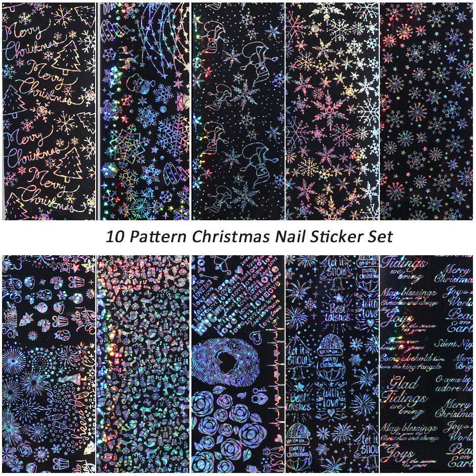 10 Stück Weihnachten Schneeflocke Transferfolie Nail Art Winter Design Aufkleber Decal