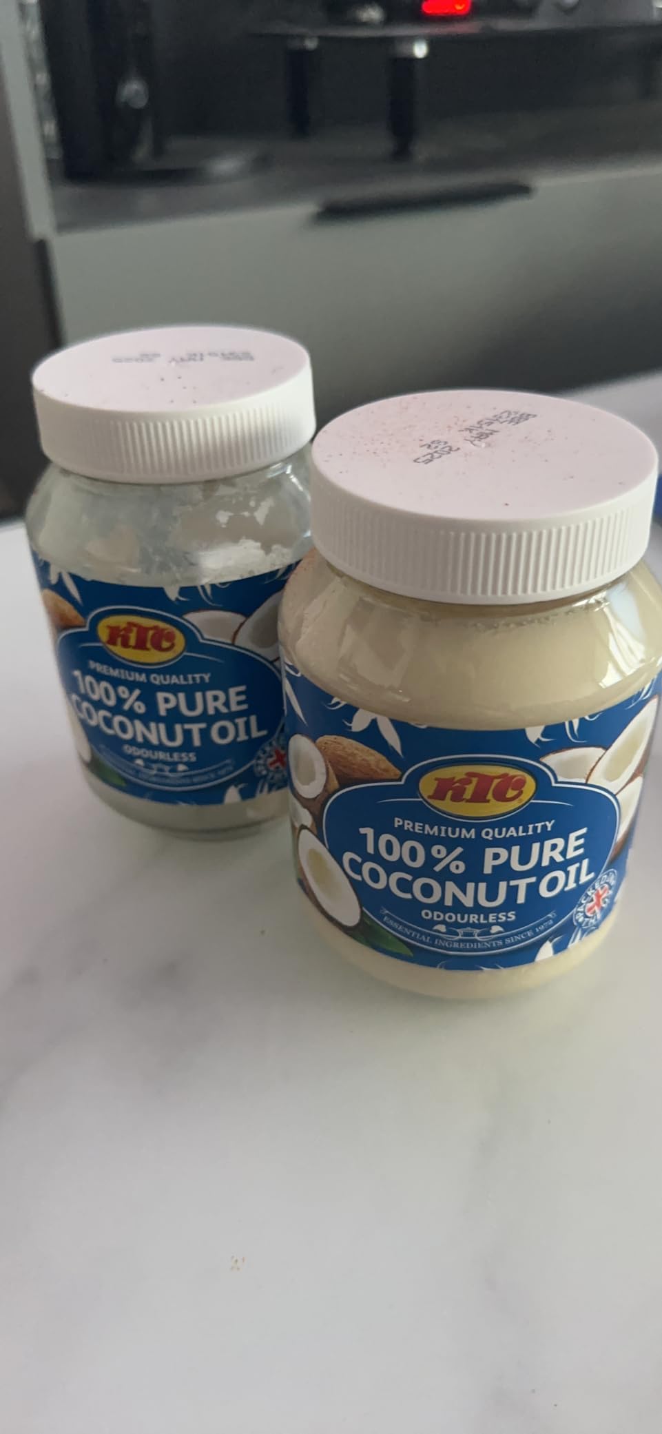 Dejan Garz KTC 100% Pure Coconut Multipurpose Oil 500ml Jar - For Hair Kokosöl Raffiniert Coconut oil, 100% Pure 500 ml - KTC KTC 100% Pure Coconut Multipurpose Oil 500ml Jar - for Hair, Cooking, Moisturiser Use & Indian Curries - 2 Pack