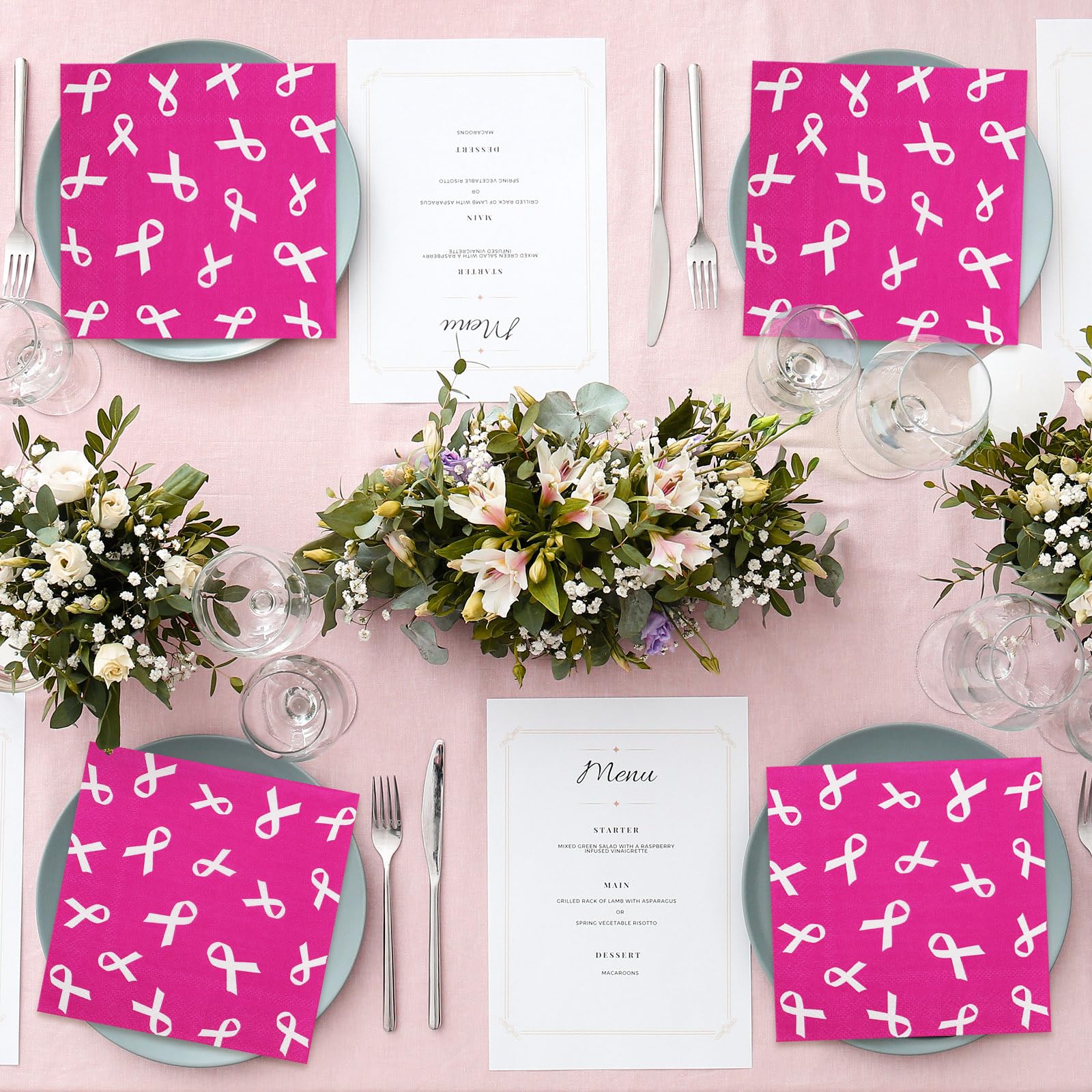 100 Stück Brustkrebs-Bewusstseinsservietten Rosa Schleife Abendessen