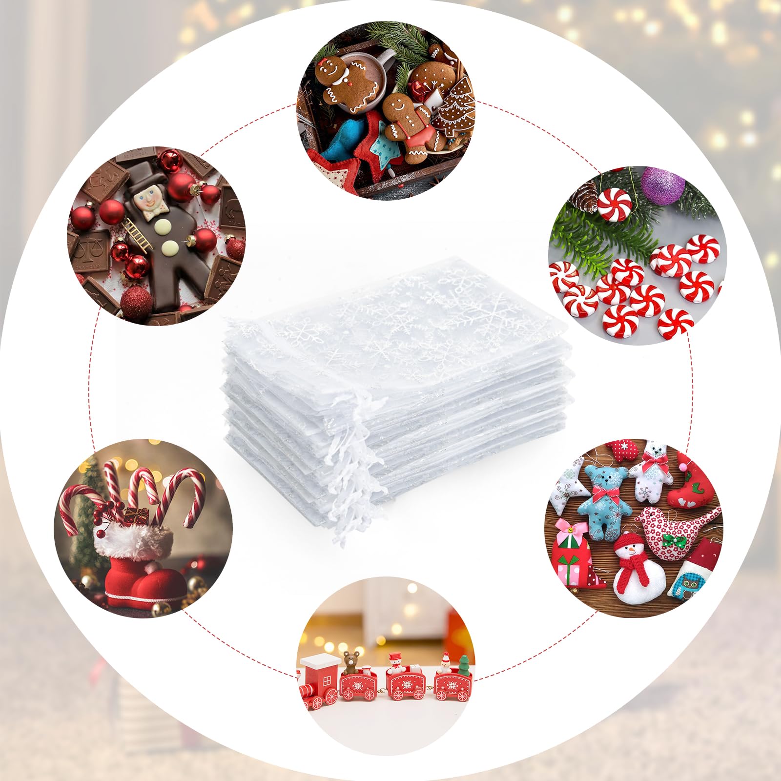 100 Stück Schneeflocken-Organzabeutel Weihnachten, Netzbeutel Für