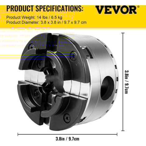 VEVOR Backenfutter 100mm Drechselfutter 4 Backen Drechselspannfutter