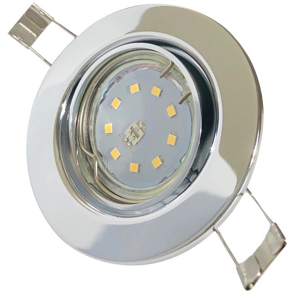 TECHNISCHE DATEN - LED Einbaustrahler | 5W | Lichtfarbe: neutralweiß | Farbe: Chrom | Form: rund | Schwenkbar: nein| Dimmbar: nein | Material: Stahl, Keramik, Kunststoff | Durchmesser: 85mm | Einbautiefe: 75mm | Bohrloch: 55-60mm | Schutzklasse: IP20 | Montageart: Federklemmen | Lebensdauer: 25000h | Abstrahlwinkel: 100° | Leuchtmittel: GU10 LED | Fassung: GU10 Keramikfassung Der Einbaurahmen wurde aus bestem Stahl hergestellt und weißt eine hochwertige Verarbeitung auf. Es muss lediglich ein Bohrloch (Ø55-60mm) vorbereitet werden, wo der Strahler dann angebracht und an ein 230V Stromquelle angeschlossen wird. LED Einbaustrahler chrom rund 5 Watt neutralweiß 230V super flach GU10 - geeignet für Badezimmer, Außenbereich IP44, Bad - elegantes Design - 55mm 1er SET Comfort, LED Einbaustrahler, 230V,5W, vergleichbar mit 50W Halogenbeleuchtung, rund, chrom, 5W neutralweiß Leuchtmittel und Fassung, ermöglicht problemlose Installation in schmalen Decken. Dafür wird der Strahler einfach im vorbereiteten Bohrloch (Ø55-60mm) angebracht und mittels Federklammern befestigt. Die dazu gehörige GU10 Keramikfassung sowie ein passende GU10 LED-Leuchtmittel überzeugen ebenfalls durch ihre Qualität und lange Lebensdauer. BESONDERS FLACH - Gesamteinbautiefe von nur 75mm inkl. Material: Stahl, Keramik, Kunststoff, Schwenkbar: nein, Schutzklasse: IP20, Bohrloch: 55-60mm, Abstrahlwinkel: 100°, Einbautiefe: 75mm, Leuchtmittel: GU10 LED, Fassung: GU10, Montageart: Federklemmen, Betriebsspannung: 230V 10er Sparpack - Einbaustrahler LED GU10 - Led Deckenstrahler 230V 5 Watt - Led Deckenlampe Wohnzimmer Warmweiß Eckig Chr SCHNELLER LEUCHTMITTELWECHSEL - Ein integrierter Sprengring sorgt für einen sicheren Halt des Leuchtmittels im Rahmen und ermöglicht bei Bedarf einen schnellen und unkomplizierten Austausch. Mit diesem Einbaustrahler erhalten Sie ein Komplettpaket für eine moderne Beleuchtung. Details: Produkt: LED Einbaustrahler, Form: rund, Leistung: 5W, Farbe: Chrom, Durchmesser: Ø85mm Die LED Einbaustrahler eignen sich dank ihres flachen Designs ideal zum Einbau in dünnen Decken oder Wänden. Die Montage kann ohne großen Aufwand durchgeführt werden YindaLux 3er Set LED Einbaustrahler 230V 3W 4000K Neutralweiß, Ultra