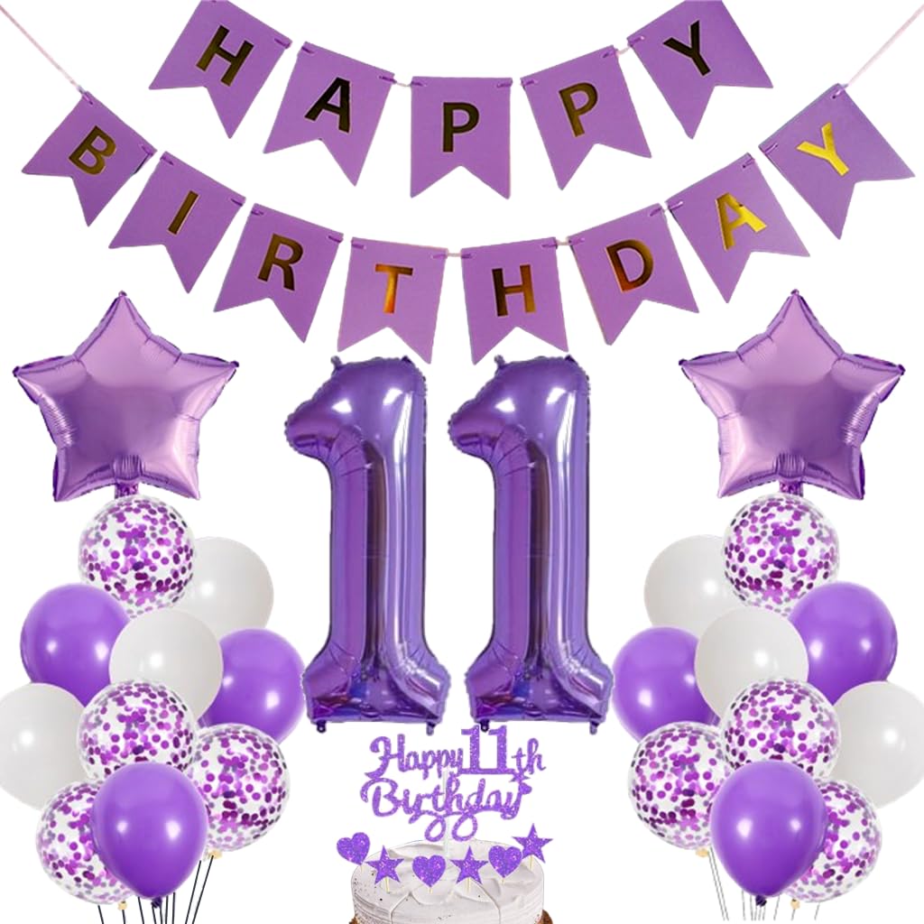 Anlgdi Luftballons 11. Geburtstag Dekoration, Lila Tortendeko