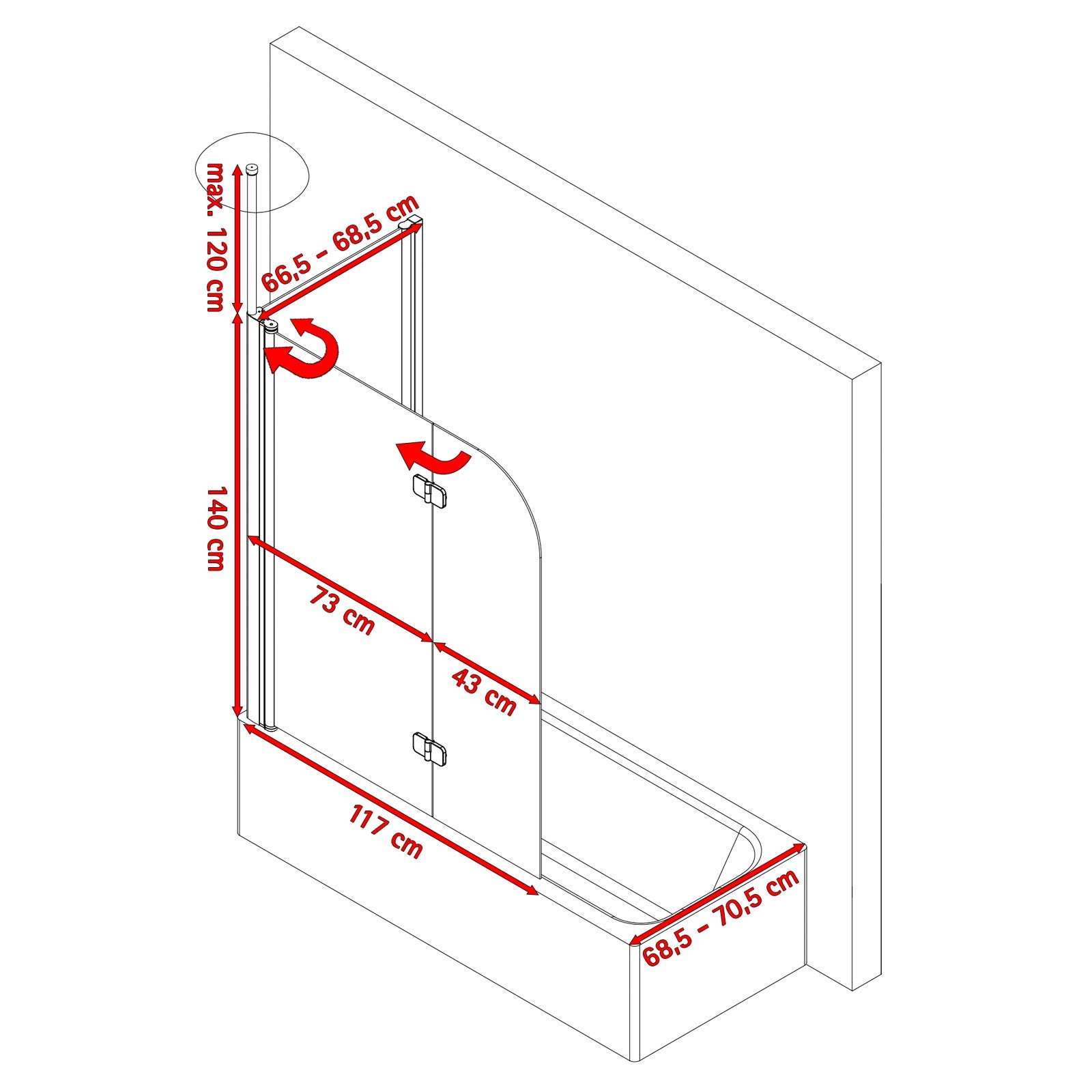 Duschwand Für Badewanne Mit Seitenwand Schulte D81101 01 52 12 3 Duschabtrennung It Seitenwand Garant Für Josef Schulte Duschwanne Schulte Garant Seitenwand für Pendeltür 2-teilig / 4-teilig Einfache Montage zum Bohren und Schrauben., Keine Fachkenntnisse notwendig., Anschlag links Beide Drehbereiche verfügen über einen Heb-Senk-Mechanismus Seitenwand 66,5 - 68,5 cm, geeignet für eine Badewannentiefe von 68,5 - 70,5 cm Spritzschutz bestehend aus zwei beweglichen Elementen und einer feststehenden Seitenwand im rechten Winkel. Duschtrennwand aus 6 mm Sicherheitsglas Matt sandgestrahlt Eine Faltwand für die Badewanne besteht üblicherweise aus einer Seitenwand, die an der Wand befestigt wird. Mit einem mehrteiligen Badewannenaufsatz sorgen Sie für noch mehr Spritzschutz beim Duschen; selbst eine Eckbadewanne wird damit zur Dusche Duschkabinen Schulte Duschabtrennung für Badewanne, 3-teilig mit Seitenwand, Faltwand: 129 x 140 cm, Seitenwand geeignet für eine Wannentiefe von 68 - 71 cm, 3 mm Sicherheitsglas (ESG) Klar hell, Alu-Natur Preis ab 199 (21.11.2024). Jetzt kaufen Duschtrennwand aus 6 mm Sicherheitsglas Bella (Chinchilla-Fell-Struktur), Einfache Montage zum Bohren und Schrauben.Keine Fachkenntnisse notwendig. Badewannenaufsatz mit durchgehendem Drehlager im Verbindungsbereich zur Seitenwand und Scharniertechnik zwischen den beiden faltbaren Glasscheiben.