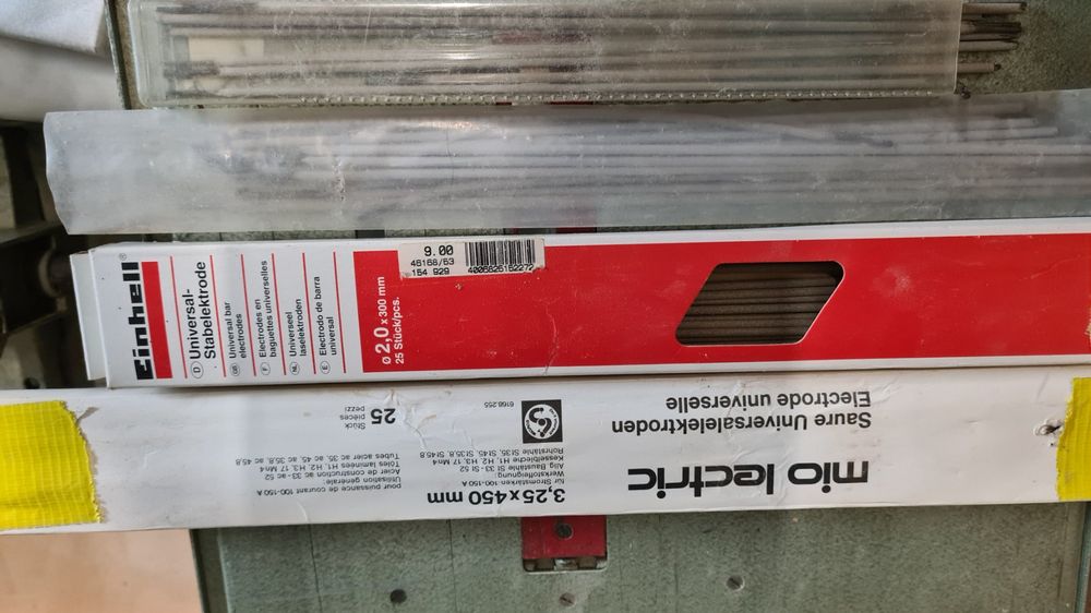 Angaben dienen der unverbindlichen Information. Betriebstemperatur: +20°C bis +300°C Härte nach Kaltverfestigung: ca. Bleibt auch nach hoher Aufmischung mit Austenitbildnern wie Mn, Ni, & C ferritisch, was ihm hohe Risssicherheit verleiht., Hohe Festigkeit! 360 HB Grundwerkstoffe: Universal Edelstahl (bei unbekannten Stahlsorten) Stahl mit hohem C- Gehalt Werkzeugstahl Federstahl Mangan Hartstahl Einsatzstahl Rapidstahl Stahlguss Panzerstahl (Verbindungen dieser Werkstoffe untereinander oder in Verbindung mit anderen Stählen) Reparaturen & Auftragungen an: Schienen, Wellen, Kupplungen, Warmarbeitswerkzeugen, Laufrädern, Press- Abgrat-, Stanzmatritzen., Sämtliche o., g. Stähle untereinander (Schwarz-Weiß) und Auftragsschweißungen an schwer schweißbaren Stählen. Universalelektroden für Edelstahl , Hochlegierte Schweißelektroden , AWS A5., 4: E 312-17 / DIN EN 1600: E 29 9 R 12 , Werkstoffnummer: 1., 4337 , 1., 6 & 2., 0 mm - jeweils ca., 250g Universal Schweißelektroden - Croni 29/9 - 1., 4337 AWS A5., 4: E 312-17 DIN EN 1600: E 29 9 R 12 DIN EN 14700: E9-UM-200-CKRTZ Werkstoffnummer:1., 4337 Die hier angebotenen Schweißelektroden entsprechen den höchsten Qualitätsstandards (Industriequalität) & wurden in Deutschland hergestellt. Universalelektroden für Edelstahl; Hochlegierte Schweißelektroden; AWS A5.4: E 312-17 / DIN EN 1600: E 29 9 R 12; Werkstoffnummer Schweißelektroden 2mm EDELSTAHL SCHWEISSELEKTRODEN THYSSEN Thermanit LW, X 12 Cr Ni 25 4, 2,5 Stabelektroden Edelstahl Legierung im Einsatz kaltverfestigend. Rutilumhüllte Stabelektrode zum Schweißen nichtrostender austenitischer Stähle zum Schweißen von CrNi-Stählen Grundwerkstoffe: 1.4301, 1.4308, 1.4311, 1.4541, 1.4550 und ähnliche Elektroden werden vakuumiert geliefert Plastikverpackung nur bei 2,5 Kg Edelstahl Kugelhähne Schweißenden DIN 3202 S13 MTC - Stabelektrode 1.4337 (312), Größe: 2,0 mm , 250 mm lang, 40 - 50 A, VPE = 270 Stück / 2,5 kg ; Herstellernummer, 1.4337 (312) ; Produktgruppe, 312 (Elektr