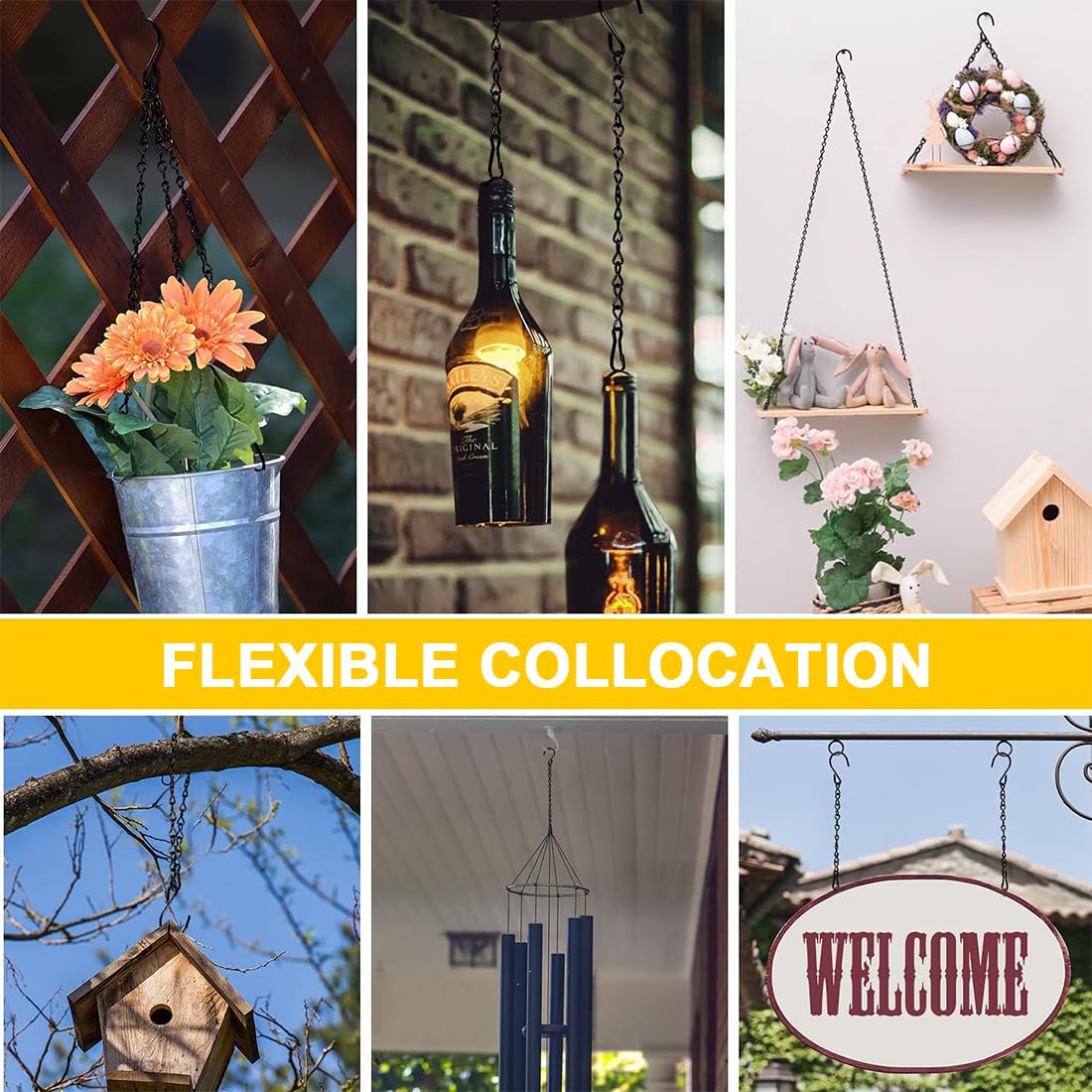 Blumenampel Kette Dekoration Ketten Garten 12x Schwarze Hängeketten Aus Stahl Mit Haken - 24cm Für Vogelhäuser, Blumenampeln & Mehr Sicherungskette Anhänger Kette Zum Aufhängen WMT Expertise in Metalltechnik: Blumenkasten, Pflanzkasten & Blumenkastenhalterung - Eindrehhalterung für Vogelfutterstation Mit einer klaren Oberfläche, die jede hängende Dekoration ergänzt, verleihen unsere dekorativen Ketten Ihrem Garten einen klassischen und zeitlosen Look, der nie aus der Mode kommt Einfache Installation und Entfernung der Metallkette zum Aufhängen Hängekorb Kette Aufhänger Pflanzenverlängerung Kolibri Vogelfutterhaus Samenfänger Tablett kleine schwarze Kette Haken Clip Bild hängende Kette Garten Terrasse Außen Halloween Dekorationen Weihnachten Thanksgiving Hochzeiten und andere hängende Dekorationen, 【61., 0 cm hängende Ketten mit Haken】 Die schwarze Metallkette mit 5 cm großen S-Haken, 3,8 cm Haken und 3,0 cm Clips. Hält rauen Wetterbedingungen stand, widersteht Frost, Rissen und Abplatzungen Es sieht zart aus und nimmt nicht viel Platz ein Jede Kette ist 24 cm lang, aus robustem Stahl und hat einen integrierten Schraubhaken – damit kannst du alles Mögliche aufhängen: Vogelhäuschen, Blumenampeln... Hängende Pflanzenkette, schwarze Kette zum Aufhängen von Vogelfutterspendern Beschreibung Qualität: Der Spiralhaken mit Kette ist aus Eisen mit Rostschutzbeschichtung gefertigt und zum Aufhängen von Blumentöpfen, Vogelhäuschen usw. verdickt Hohe Qualität mit erschwinglichen Preisen. Verstellbare Länge: Unsere Pflanzenketten sind einfach mit einer Zange zu verstellen, so dass Sie die Höhe nach Ihren Wünschen anpassen können.