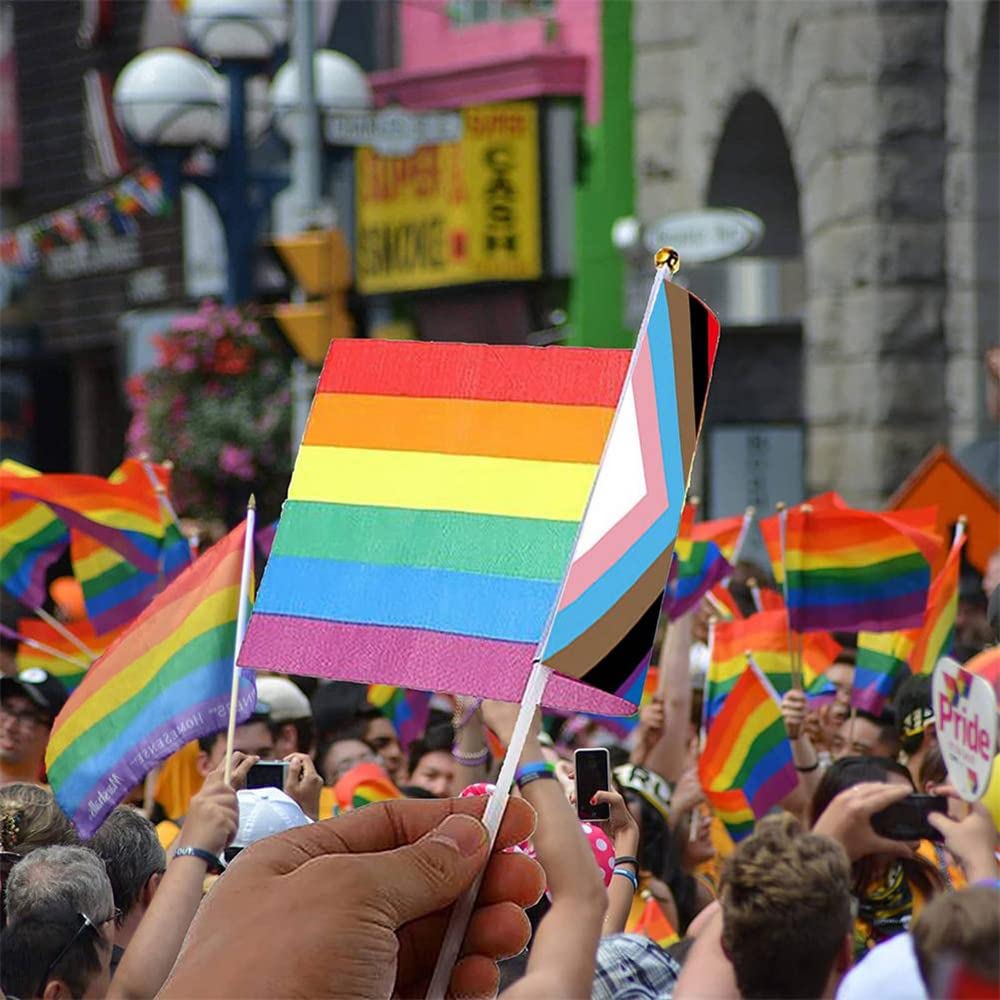 QAZESPEN 14X21cm Progress Pride Flag, Stockflagge, Mini-Handheld