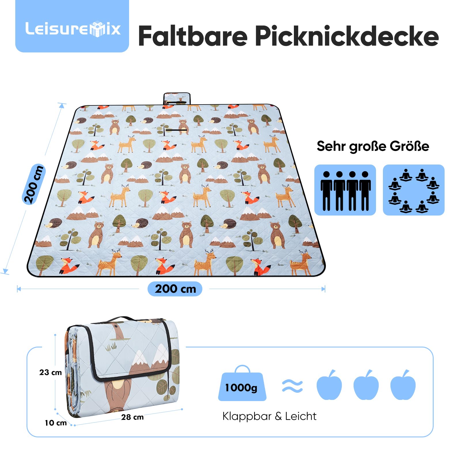 Die tragbaren Funktionen können problemlos an Ihre Ausflugsbedürfnisse angepasst werden Warnhinweise Achten Sie darauf, die Decke nicht in der Nähe offener Flammen oder hoher Hitzequellen zu verwenden, da PVC-Materialien entzündlich sein können. Hochwertiges Vlies: Die Picknickdecke Groß besteht aus hochwertigem Vliesmaterial, das sich angenehm anfühlt, robust und langlebig ist. Mocoli Picknickdecke Wasserdicht 200x200 Outdoor Stranddecke XXL Sandfrei Strandmatte Campingdecke Sanddichte Outdoordecke Familiendecke Picknick Marke. WatDenyFine · Größe. 200 x 200 cm (Quadratisch) · Material. Polyvinyl Chlorid (PVC) · Webart. Flach gewebt · Stapelhöhe. Niedriger Stapel · Bauart. Maschinell... Es verfügt außerdem über ein exquisites Kantendesign und die flachen Kantenlinien betonen die Textur der Picknickmatte Leicht zu Reinigen: Die Sandfreie Stranddecke ist sehr pflegeleicht und kann einfach mit einem feuchten Tuch oder einem feuchten Lappen abgewischt werden. Die Decke kann rutschig sein, wenn sie nass ist, also achten Sie darauf, um Stürze zu vermeiden. Einzigartiges Design: Das Picnic Mat kann aufbewahrt und gefaltet werden und der integrierte Griff ermöglicht ein einfaches Tragen. Niedliche Muster können Ihrem Picknickausflug eine angenehme Stimmung verleihen Picknickdecke Wasserdicht Sanddichte Stranddecke, Picknickdecke, Extra Grou00df, 200 X 200 Cm, Kein Sand Fu00fcr Den Auu00dfenbereich, Strandmatte Mit 4 Eckschlaufen, Tragbar, Waschbar, Camping (200 X 200 Cm, Blau Camping Decke Auch für Gartenspiele, Strandausflüge, Wandern, Camping, Zelt, Angeln und andere Aktivitäten geeignet. Farbe: Weiß mit Ananas-Muster Abmessungen: - Picknickdecke: 200 × 200 cm - Nach dem Falten: 30 × 20 cm - Verpackungsabmessungen: 30 × 20 × 5,5 cm; 320 Gramm Tipps: 1., Um die Faltgröße nicht zu beeinträchtigen, wird empfohlen, nicht in der Maschine zu waschen., 2., Aufgrund von Messfehlern und Bildfarbunterschieden können sich die Decke, die Sie erhalten, in Größe oder Farbe leicht von der Beschreibung abweichen., 3., Die Decke kann rutschig sein, wenn sie nass ist, also achten Sie darauf, um Stürze zu vermeiden. Der Boden besteht aus PVC-Material mit guter Wasserdichtigkeit, das Feuchtigkeits- und Wasserdichtigkeitseigenschaften aufweist Ultraleichte Picknickdecke – Die 15 besten Produkte i Vergleich » Karawankentunnel Aodafei Picknickdecke Rot Weiß Kariert,Outdoor Picknick-Decke
