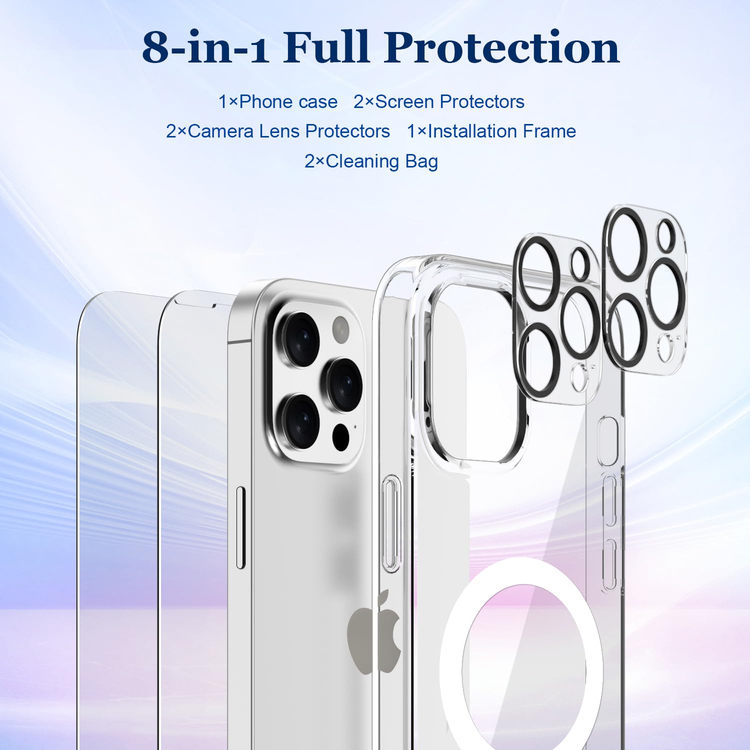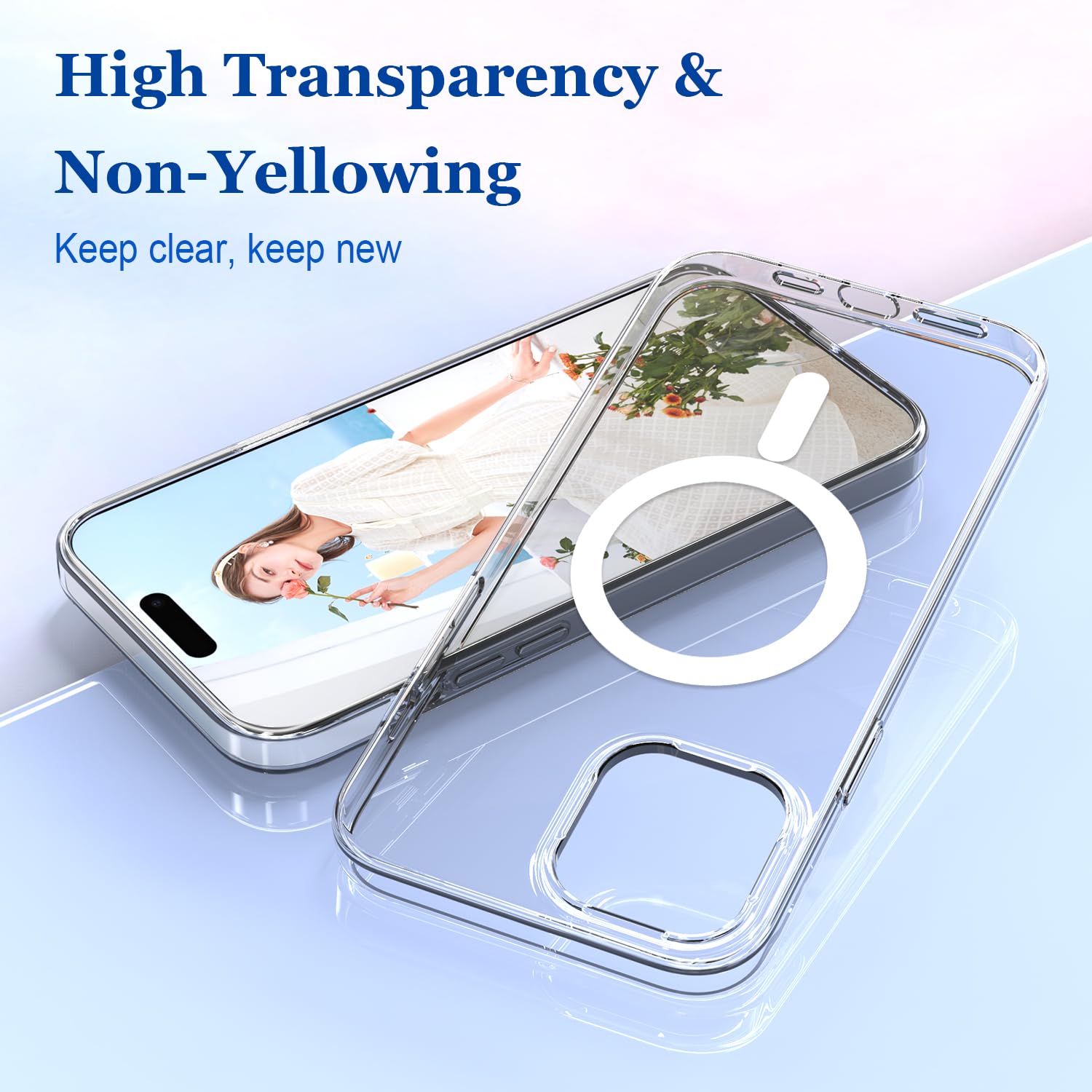 ESR Für IPhone 15 Pro Max Hülle Set, Kompatibel Mit MagSafe, 1 Displayschutzfolie Aus Gehärtetem Glas, 1 Satz Kamera Schutzfolien, Militärnorm Schutz, Vergilbungs, Kratzfestes Case Classic Serie, Klar