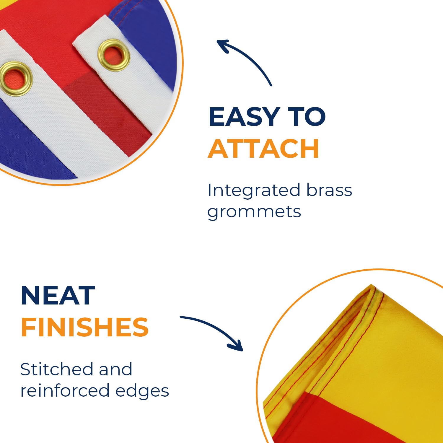 AZ FLAG Romania Flag - 150 X 90 Cm Polyester - Romanian Flag With Integrated Brass Eyelets - 80 G GROSSE Rumänische Flagge Fahne Romania Rumänien Flag Einfach zu bedienen mit seinen Kordel-Krawatten, werden Sie auch seine elegante Oberfläche zu schätzen wissen (genähte und verstärkte Kanten). Zustand: Neu und originalverpackt Diese Flagge, die 45 cm x 30 cm misst, ist in Blisterpackungen für einfachen Transport verpackt. Sie können es leicht mit seinem Gewicht von 20 g umgehen. Es wird der Einheit vorgeschlagen. Stock-Flagge 30 x 45 : Rumänien, 3,95 Flagge | Fahne Rumänien günstig kaufen Money Back Guarantee ensures that buyers receive the item they ordered or get their money back. es zu anderen Produkten der Kategorie Rumänien.