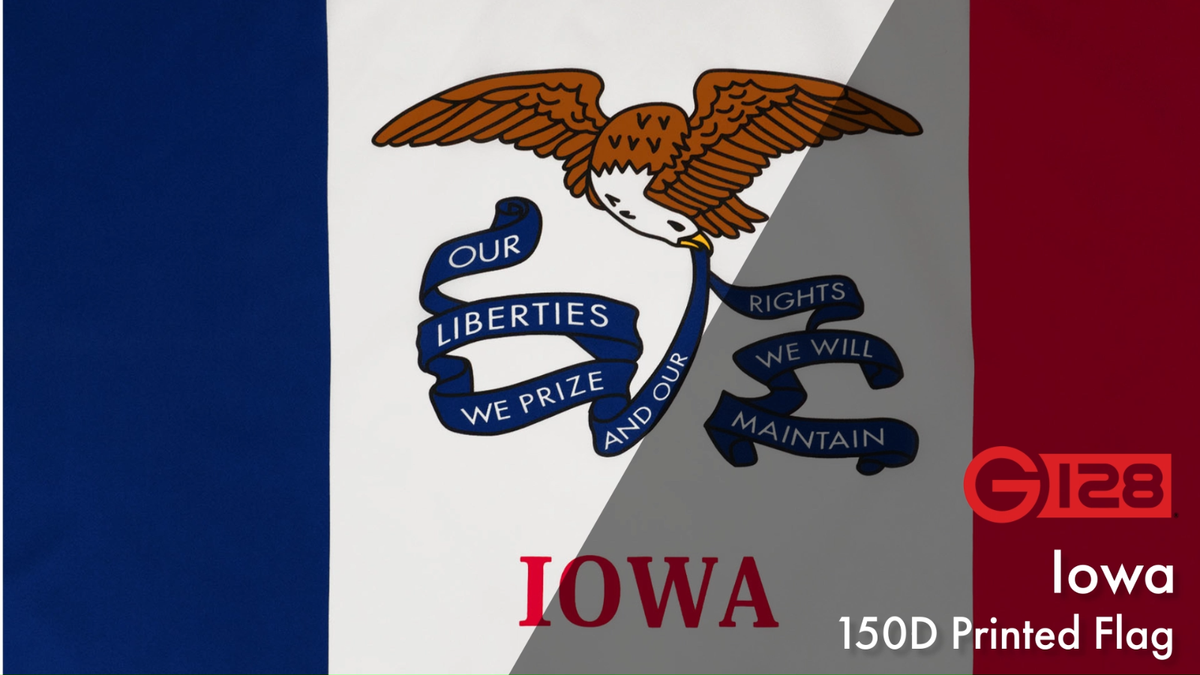 FlagSuperstore© Iowa Flagge, 150 X 90 Cm, US-Staat, 100 % Polyester USA - Bundesstaat Iowa-Fahne USA - Bundesstaat Iowa-Flagge im Fahnenshop bestellen USA - Bundesstaat Iowa-Fahne USA - Bundesstaat Iowa-Flagge im Fahnenshop bestellen 100 % Polyester mit 2 Metallösen, Siebdruck in kräftigen, klaren Farben, Größe: 150 cm x 90 cm, doppelt genähter Saum um den Rand, geeignet für den Innen- und Außenbereich., Iowa Flagge Iowa-Flagge Detaillierte Flagge auf weißem Hintergrund Vektorillustration | Premium Vektor