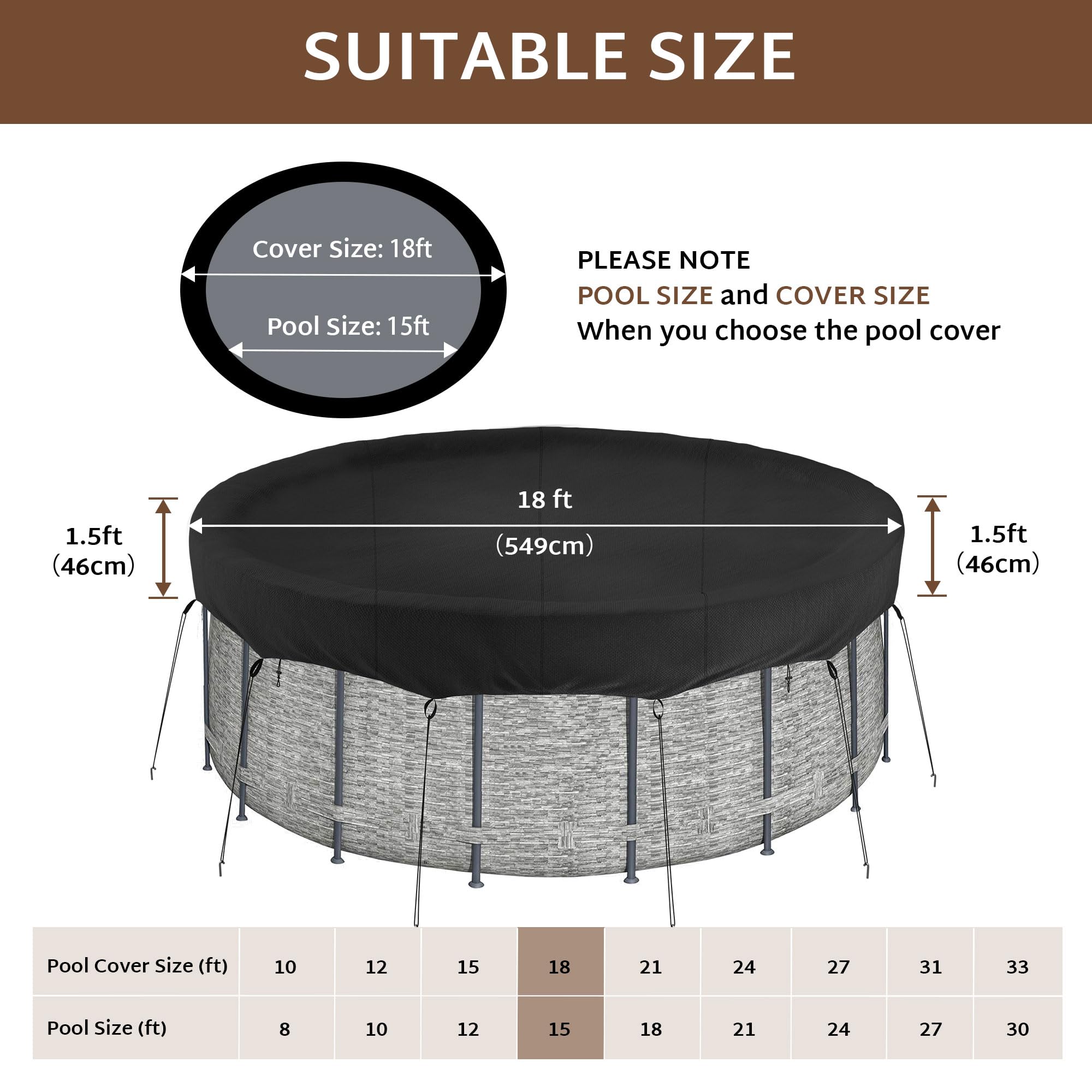 Beaufsichtigen Sie Kinder und Haustiere immer, wenn sie in der Nähe sind oder den Pool benutzen. UIRWAY 640 cm Poolabdeckung, 420D Winterabdeckung für oberirdische Pools, Uv-Schutz Pool Abdeckplane Mit Kordelzug Und BodennäGeln FüR StabilitäT Und Einfache Installation Produktbeschreibungen iBirdie Winter Poolabdeckung 10x16, 11x17 Fuß Ovale Pools, für lichtbeständige, reißfeste, wasserdichte und wetterfeste Außenpool-Schutz, Schwarz, Stoff 500D Warnhinweise Behalten Sie Kinder und Haustiere rund um Ihren Pool immer im Auge und achten Sie darauf, dass sie nicht klettern oder auf der Abdeckung sitzen. Sichere Installation: Knoten an den Kordelverschlüssen verhindern, um ein Verrutschen zu verhindern; sichere Abdeckung schnell mit verstellbarem Kordelzug, Zugringen, Seilen und Bodennägeln; gebaut, um windigen Blättern, Staub und Schmutz standzuhalten und für eine einfache Poolpflege zu blockieren Diese Abdeckung ist keine Sicherheitsabdeckung und sollte nicht als eine verwendet werden. Allwetterschutz: Erleben Sie das ganze Jahr über Entspannung mit unserer 500D-PU-Abdeckung, die entwickelt wurde, um verschiedenen Klimazonen vom frostigen Norden bis zum sonnigen Süden standzuhalten. Bodenplane für Schwimmbecken, Schutzmatte für oberirdische... Wickeln Sie Ihren Pool in langlebigen Stoff, um die Schönheit und Bereitschaft Ihrer Freizeitzone zu erhalten Intex Winterabdeckplane IBirdie Winter-Poolabdeckung Für 14, 15, 16 Fuß Oberirdische Runde Pools, Für Lichtbeständige, Reißfeste, Wasserdichte Und Wetterfeste Outdoor-Schutz Winterplane Intex Frame Pool