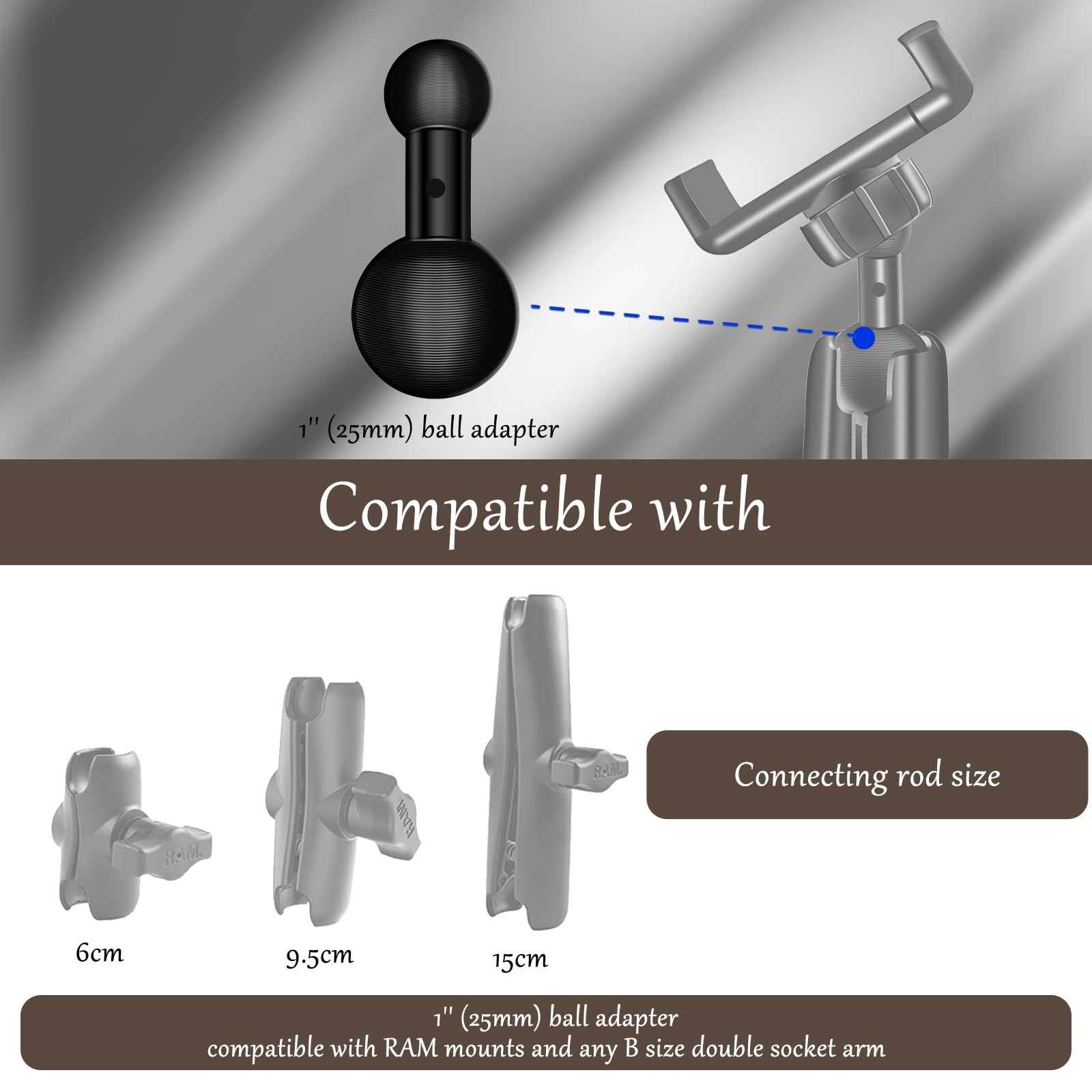 25 Mm / 1 Zoll Auf 17 Mm Kugeladapter Für Doppelbuchsenarm Der Große B 17 Mm Schwenkbares Kugelmontagemuster Gps Halterung