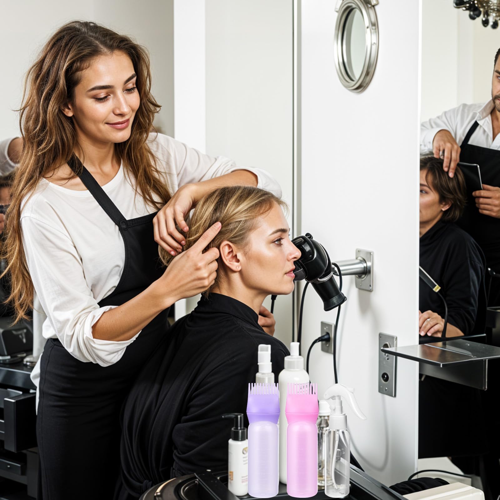 2 Stück Haaröl Applikator, 170ml Wurzelkamm Applikator Flasche Mit Sprühflasche Applikatorflasche Wiederverwendbar Für Haarfärbeflaschen Applikatorbürste Applikatorkamm Friseur Färbe Styling Werkzeug