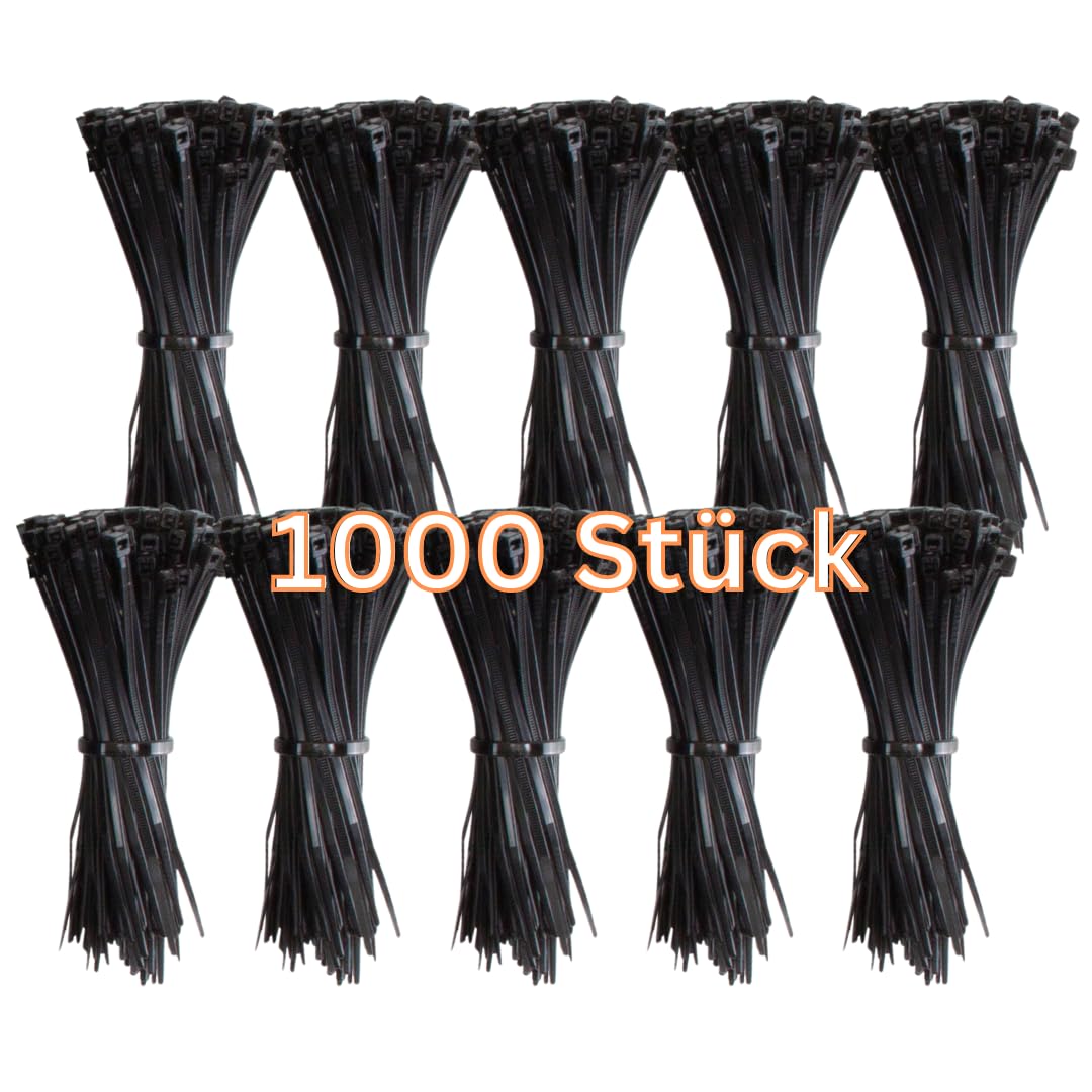 Kabelbinder Set 1000 St Schwarz Kabelband 180 200 250/ 2,5 3,4 3,6 / 1000 Stück