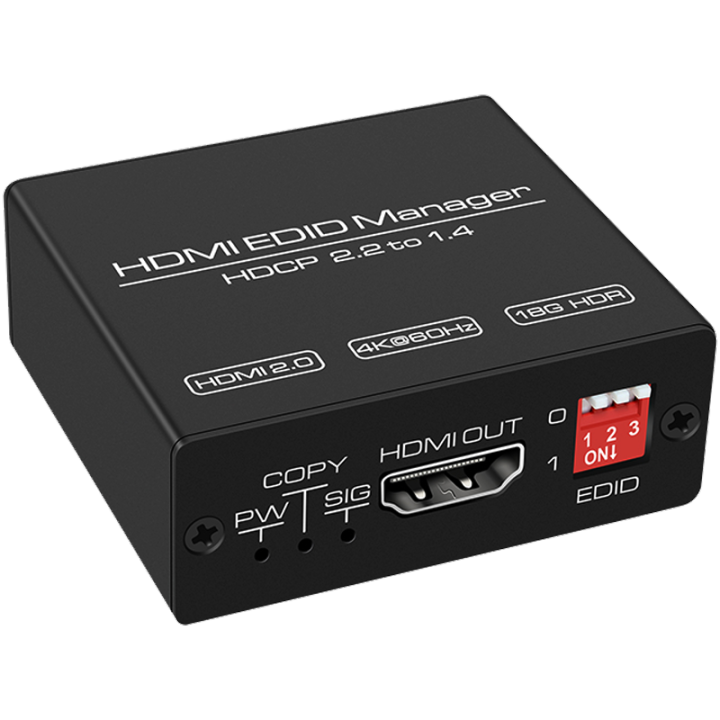 Stromversorgung über das HDMI-Quellgerät, keine externe Stromversorgung erforderlich. CES 2019: HDMI 2.1 TV connections finally arrive, cables will follow Der HDMI EDID Emulator ist ein Gerät, das die EDID-Informationen eines HDMI-Displays emulieren und speichern und es dem HDMI-Quellgerät zur Verfügung stellen kann, sodass er die Videoauflösung effektiv anpassen kann. Ein HDMI-EDID-Emulator kann die Videokommunikationsprobleme lösen, die bei der Verwendung von AV- oder KVM-Extendern, Switchern und Splittern auftreten, aufgrund der Missstimmung der EDID-Daten zwischen HDMI-Quelle und Display. Headless-Betrieb unterstützt; kein Monitoranschluss erforderlich. Einfache Einrichtung: Eingebauter Drehschalter, unterstützt 14 voreingestellte EDID-Werte (interne EDID) und EDID Copy-Funktion, um den neuesten externen Monitor EDID (externe EDID) zu emulieren., HDMI 2., 0 Konformität: Dieses Produkt erfüllt die Standards HDMI 2., 0 und HDCP 1., 4 und 2., 2., Es unterstützt Auflösungen bis zu 4K x 2K @ 60Hz / 1080p @ 240Hz YCbCr 4:4:4 und 3D-Funktionalität. THWT HDMI 2.0 4K EDID Emulator , unterstützt exakte EDID-Kopie und Emulation, HDCP-Passthrough , PreSET EDID ist 1080p @ 60Hz 4:4:4 und 4K @ 60Hz 4:2:0 4k Switch 60hz Hdr THWT HDMI 2.1 4K EDID Emulator PRO , Unterstützt SCDC Und Exact Edid Emulator 4k 60hz Ein HDMI-EDID-Emulator kann auch einen Computer oder Server ohne Display laufen, für einfachen Fernzugriff. Durch die Unterstützung von Auflösungen bis zu Ultra HD 4K 60Hz und der Kompatibilität zu HDCP 2.2 verschlüsselten Inhalten ist der Emulator bestens für nahezu alle neuen PC- sowie AV-Applikationen geeignet
