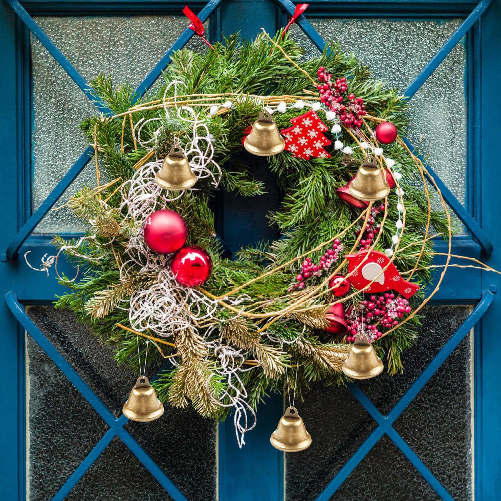 100 Stück Weihnachtsglocken 2,5 Cm Vintage Handwerk Glocken Dekorative Messingglocken Hängende Bronze Glocken Ornamente 3 Stück Flachs Seil Für Windspiele Haustier Hund Katze Anhänger Weihnachtsbaum