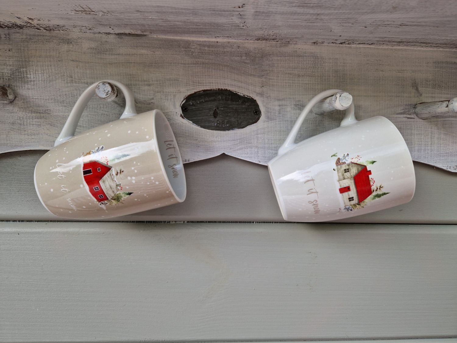 Becher Weihnachtstasse 2 Er Set Häuschen Weiß Natur Keramik 330 Ml