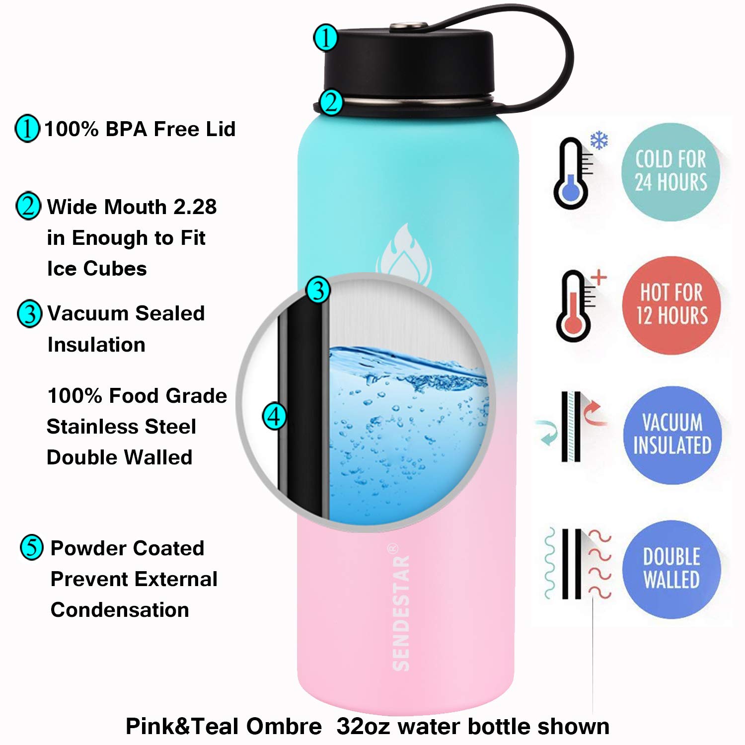 Diese Flasche hält Ihre Getränke für viele Stunden kalt und heiß. Warum sollten Sie diese T-Form mit einem Fassungsvermögen von 900 ml zusammenstellen? Dieses Design ist für Outdoor-Aktivitäten besonders für diejenigen, die häufig fahren. Die rutschfeste Pulverbeschichtung sorgt dafür, dass Sie während des Trainings, Wanderung oder Yoga an Ihre Flasche hängen. 【Funktionales Design】 946 ml isolierte Wasserflasche passt auf jeden Standard-Becherhalter im Auto. RO Cell und die meisten Weithalsflaschen Siple odern Ascent Wasserflasche schale Öffnung... Isolierflasche 750ml SENDESTAR Wasserflasche, 1,2 L, 2 Deckel (Strohhalmdeckel), Breite Trinkflasche 1 5 Liter Edelstahl Es hat das größte Volumen, die für jeden Standard-Becherhalter im Auto geeignet ist. Siple odern Ascent Wasserflasche schale Öffnung Viele verschiedene Farben erfüllen alle Ihre Bedürfnisse. Worauf warten Sie? Bestellen Sie schon den #SENDESTAR! Sendestar 900 ml dünne, isolierte Wasserflasche., Kunststoff-Wasserflaschen? Nein Danke! Zwei verschiedene Trinkmöglichkeiten: Ja, die schlanke Wasserflasche von Sendestar hat zwei verschiedene BPA-freie Deckel, die jederzeit umgeschaltet werden können. Diese universellen Deckel sind auch kompatibel mit Hydro Flask, Simple Modern, Takeya, Hyda. Probieren Sie den Sendestar, der mit zwei verschiedenen Deckeln geliefert wird (ein flexibler Strohhalm-Deckel mit zwei Trinkhalmen und einer Strohhalmbürste und einem Ausguss-Deckel). eine volle Rückerstattung bzw., einen Umtausch! Der breite Ausgießer ist perfekt für Strand, Camping, Wandern, Fahrradfahren. Wenn wir draußen sind oder fahren, müssen Sie nicht stoppen und ständig Wasser hinzufügen, was unseren täglichen Trinkbedürfnissen gerecht wird und der Strohhalmdeckel ist perfekt für das Trinken mit einer Hand. Die Sendestar-Wasserflasche ist aus hochwertigem 18/8-Edelstahl, der 100 % BPA-frei ist.