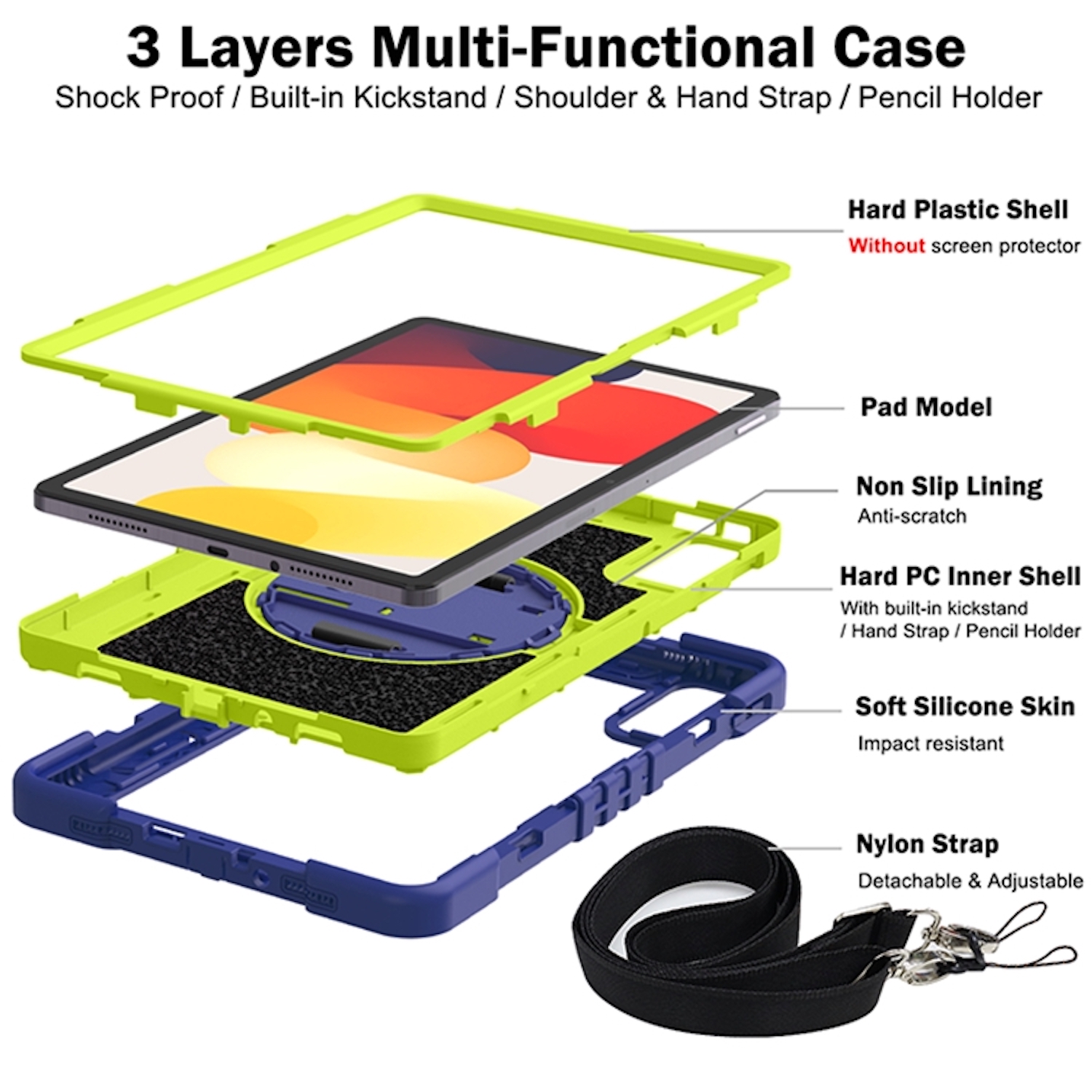 Für Xiaomi Redmi Pad 2 /SE 11 Zoll Aufstellbare Outdoor Hybrid Schwarz 360 Grad Mit Halte Schlaufe Tablet Tasche Schwarz 42552501