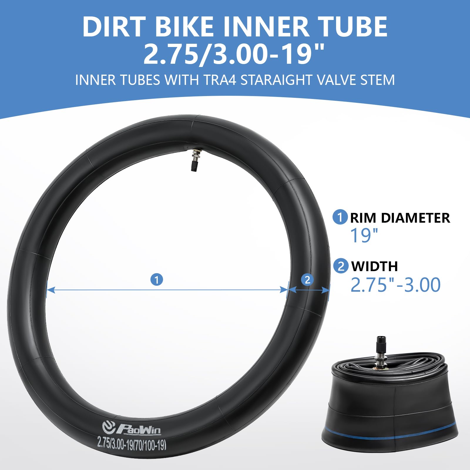 2 Stück 2.75/3.00 19(70/100 19) Motorrad Schläuche TR4 Gerades Ventil Hochleistungs Butylkautschuk Motorrad Innenschläuche, Kompatibel Mit 2.75 19 3.00 19 Dirt /Mini Pit Bike Vorder /Hinterradreifen