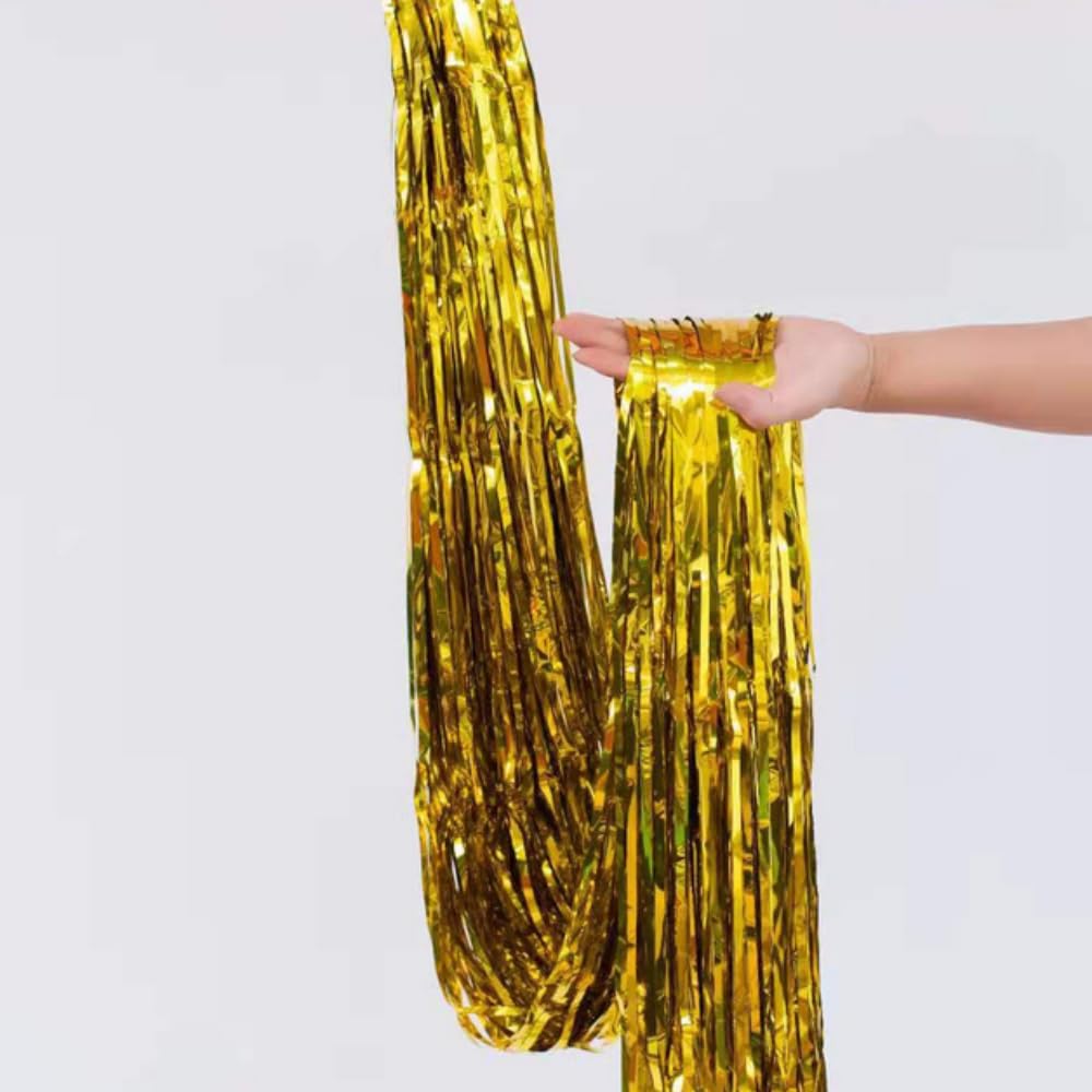 2 Stück Fransenvorhänge, Goldmetallic, Lametta-Folie, Fransen