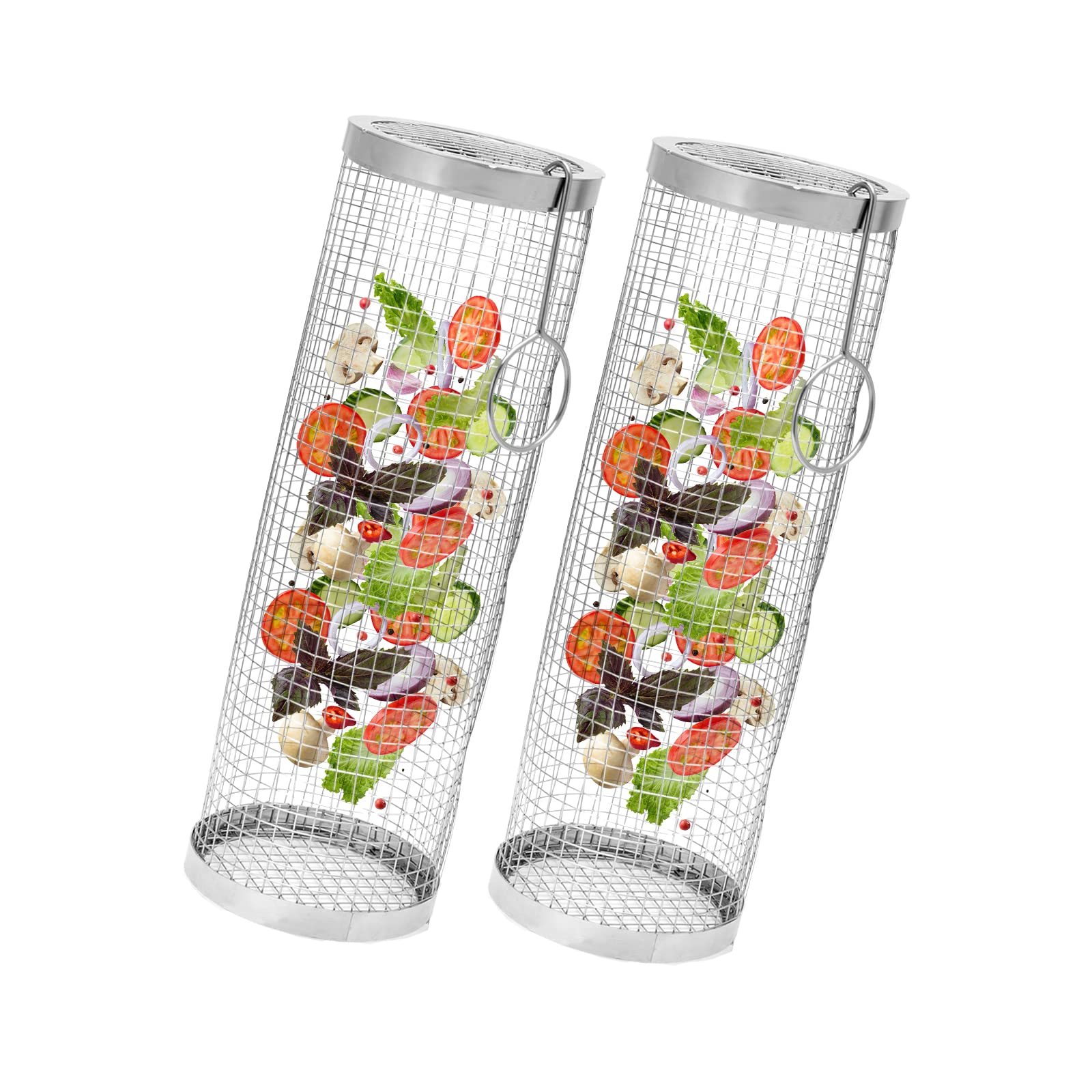 Leerweii 2 Stück Grillkorb Edelstahl Mit Doppelten Holzgriffen