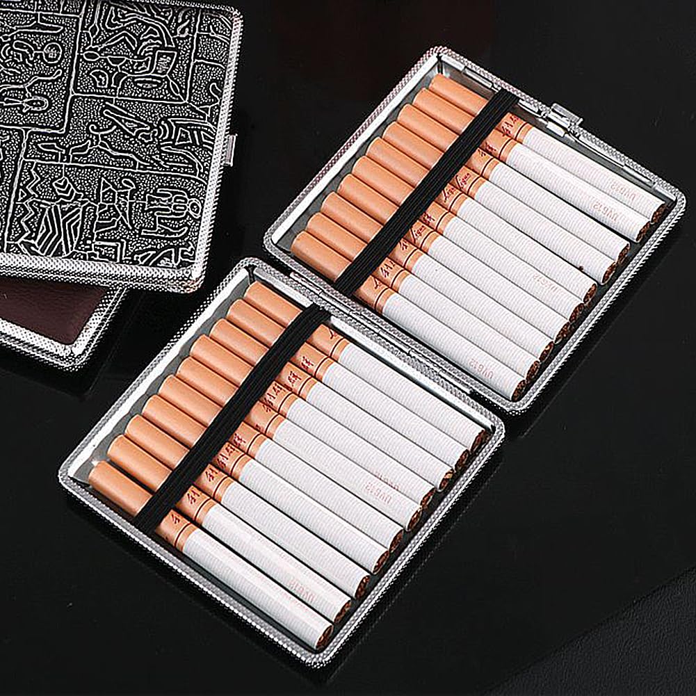 2 Stück Leder Metall Zigarettenetui,PU Zigarettenschachtel Für 20