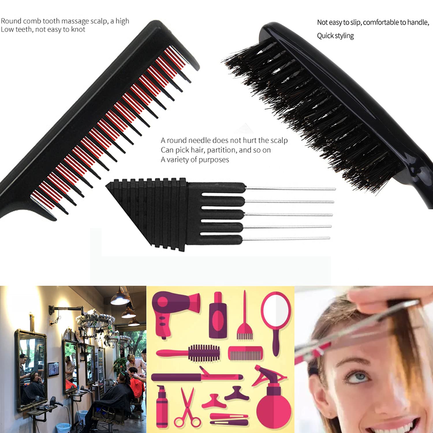 2 Stücke Rattenschwanzkamm, Professioneller Salon Haarstylings