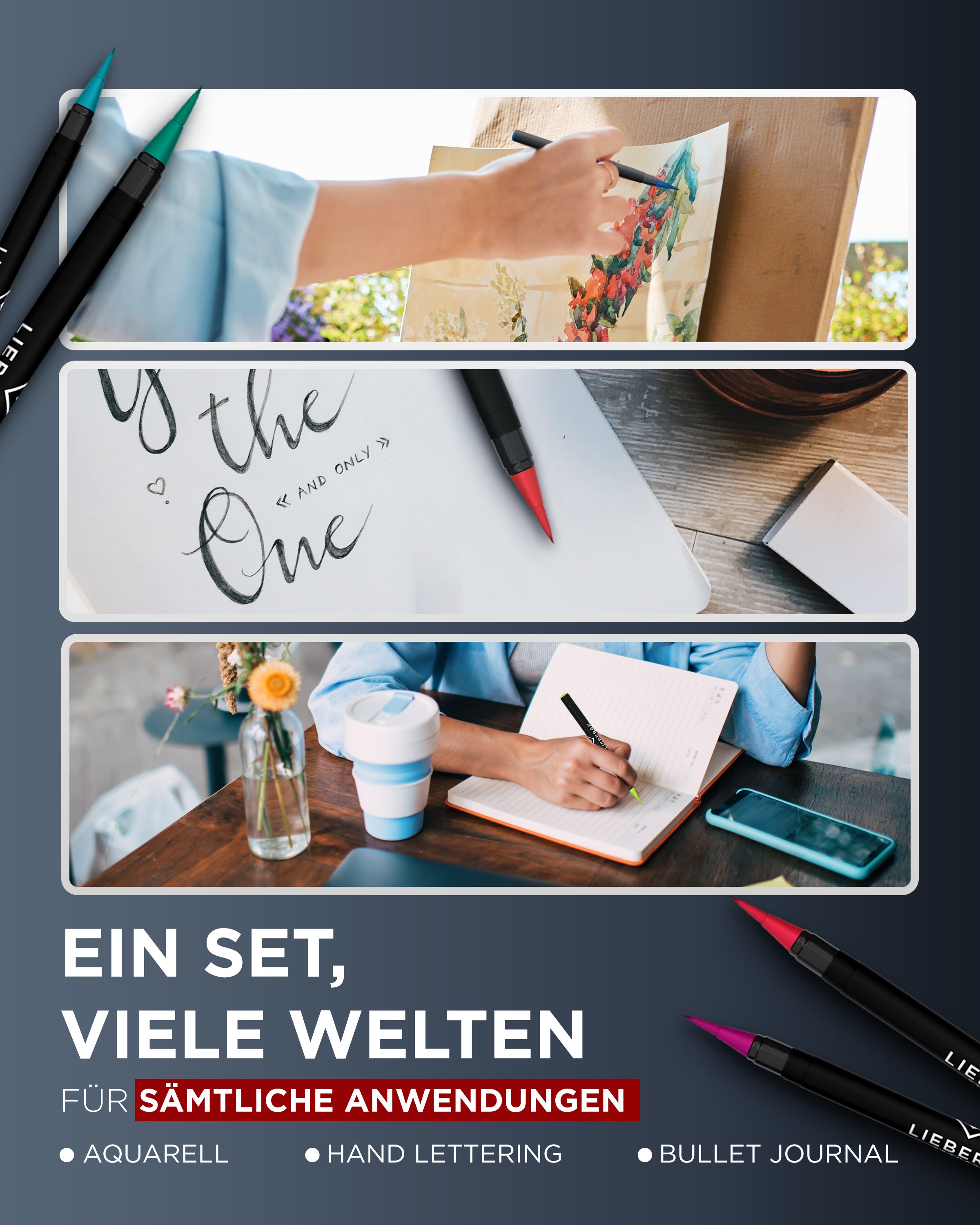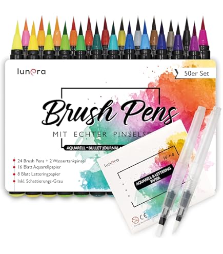 Belmique Aquarellstifte Brush Pens XXL-SET, INKL. 2 Wassertankpinsel Und 24 Blatt Aquarellpapier 38 Tlg 38 Set Kalligraphie Stifte Handlettering S0n1g0ky