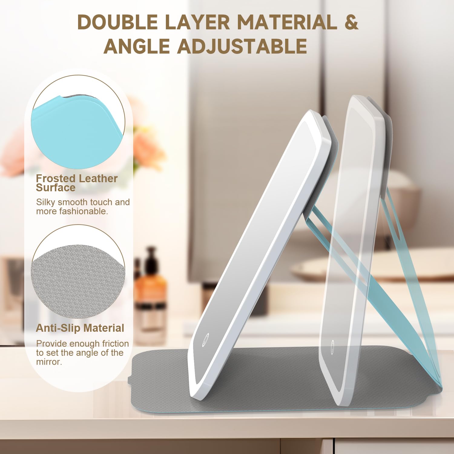 Mocado wiederaufladbarer Reise-Make-up-Spiegel: Ausgestattet mit einem 800-mAh-Akku, benötigt nur 120 Minuten zum Aufladen. Bestellen Sie noch heute – verwenden Sie es am nächsten Urlaub. Egal, ob Sie auf Reisen, auf Partys oder auf Geschäftsreisen sind, der Mocado Reise-Make-up-Spiegel ist perfekt für Sie. Tragbar zum Tragen: Professionelles Reise-Design, Größe: 20,3 x 12,7 cm, nur 1,3 cm wenn gefaltet, schlankes Design, mit Samt-Aufbewahrungstasche, einfach in Handtasche, Rucksack, Gepäck zu tragen. Der Spiegel mit 10-facher Vergrößerung kann besser Lidschatten, Wimpern, Eyeliner und andere Make-up-Details erfüllen. Kosmetikspiegel Mit Beleuchtung Und Vergrößerung Mocado Faltbarer Reise Make Up Spiegel, LED, 20,3 X 15,2 Cm, 3 Farben, Lichtmodi, TypeC, Wiederaufladbarer Touchscreen, Tragbarer Tisch Kosmetikspiegel (schwarz Kosmetikspiegel Mit Licht LIV&BO® Beleuchteter Make-up-Spiegel von Kaufland ansehen Warnhinweise Achtung: Dieses Produkt enthält Glas, das beim Herunterfallen brechen kann., Vorsichtig handhaben. Mocado wiederaufladbarer Reise Make up Spiegel: Ausgestattet mit einem 800 mAh Akku, benötigt nur 120 Minuten zum Aufladen. Er kann für 3–7 Stunden verwendet werden, erfüllt die Make up Bedürfnisse für 7 Tage auf Reisen. Mocado wiederaufladbarer Reise Make up Spiegel Kontrollleuchte blinkt rot beim Laden, wird grün, wenn der Ladevorgang abgeschlossen ist. 【3 Beleuchtungsmodi und einstellbare Helligkeit】 Implantiert mit 60 LED-Lichtperlen, kann es mit 3 Lichtmodi von Kaltweiß, Naturweiß, Warmweiß eingestellt werden. Zur Montage immer eine stabile Oberfläche verwenden. Sie können das benötigte Licht entsprechend dem Umgebungslicht der Verwendung einstellen. Rutschfeste Oberfläche auf der Unterseite, Sie können wählen, ob Sie sie horizontal oder vertikal platzieren möchten, erfüllt alle Arten von Make-up-Bedürfnissen. Ausgestattet mit 0,5 m langem TypeC-Ladekabel, können Sie es über Laptop, mobiles Netzteil, Ladegerät usw., aufladen. 15 LED Hollywood Schminkspiegel mit Beleuchtung 58x46cm Kosmetikspiegel Dimmbar Mit einem kurzen Druck können Sie die Farbtemperatur einstellen und lange drücken, um die Helligkeit einzustellen., ness Außerhalb der Reichweite von Kindern aufbewahren. Stellen Sie keine schweren Gegenstände auf den Spiegel.