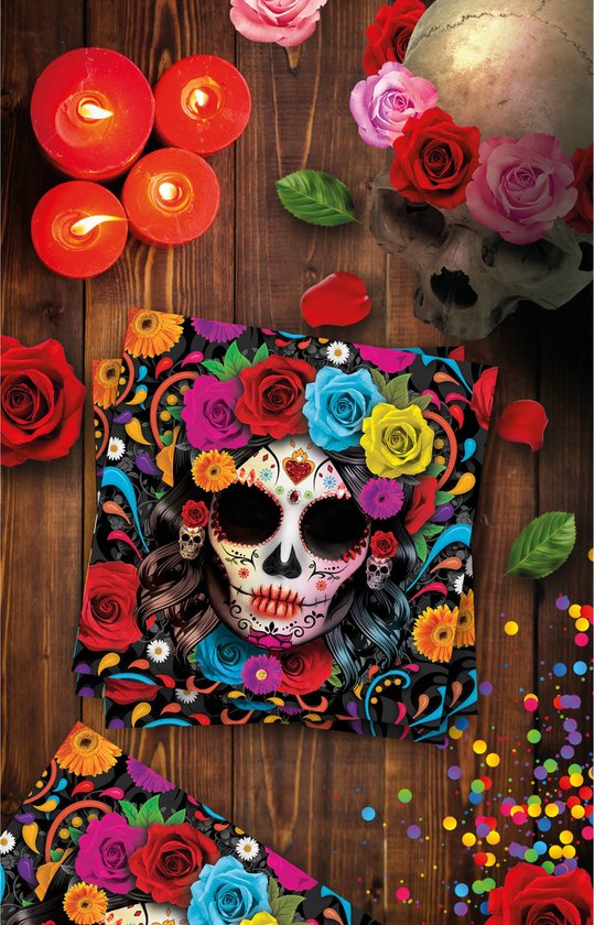 IHR - C 922164 - Cocktail Papierservietten, 20 Stück, Catrina, Totenkopf, Weiß, 25cm X 25cm, 3 Lagig